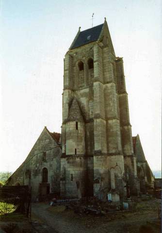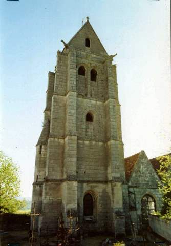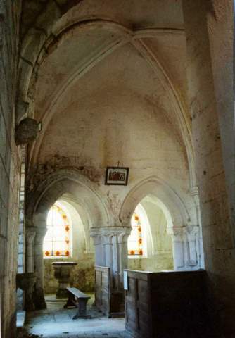 L’église paroissiale placée sous le vocable de saint Laurent est un édifice composite dont les éléments juxtaposés sont d’une grande qualité. La nef de deux travées de la fin du XIIe s. ou du tout début du XIIIe s. est prolongée par un chœur d’ une travée à chevet polygonal qui est une reprise de la fin du Moyen Age. L’arc doubleau de la nef est un arc brisé dont la mouluration complexe reprend la mouluration à trois boudins des ogives voisines. Il s’appuie sur des tailloirs, chapiteaux à feuillages simplifiés et colonnes engagées dont les exemples se retrouvent dans les ouvertures qui donnent sur le bas-côté nord. A l’origine ces passages comportaient une double arcature en arc brisé, comme elle est conservée dans la première travée de la nef ; dans la deuxième travée une ouverture plus grande, postérieure, en tiers-point a fait disparaître le trumeau central pour ne conserver que les piédroits. Au-dessus, des fenêtres en plein cintre aujourd’hui occultées paraissent correspondre à la disposition première de la nef. Le bas-côté du nord a été entièrement repris par un nouveau voûtement à la fin du XVe ou au début du XVIe s. Le bas-côté sud plus élevé ouvre par de larges baies sur la nef, il comporte trois travées, la première, sous clocher, est peu éclairée ; les deux autres le sont par deux grandes fenêtres percées dans le mur goutterot au-dessous de deux pignons correspondant aux toitures de ces travées perpendiculaires à la toiture axiale de la nef. Sur le côté oriental de ce bas-côté un grand fenestrage flamboyant a été muré pour placer un retable du XVIIIe s. les clés des voûtes légère ment pendantes et les pilastres des supports indiquent pour ce bas côté un XVIe s. avancé. Un grand clocher s’élève à droite du pignon occidental au-dessus de la première travée du collatéral sud. Une tourelle d’escalier sur son côté ouest dessert le premier étage, pratiquement aveugle. Cette tourelle est coiffée d’une toiture conique en pierre. Le deuxième étage est percé d’ une ouverture en tiers-point sur chaque face, le troisième de baies géminées;