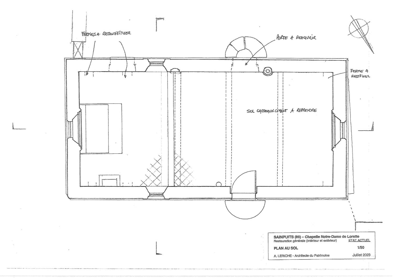 La chapelle Notre-Dame de Lorette présente une architecture très simple et modeste, caractéristique des petites chapelles rurales de Puisaye au début du XVIᵉ siècle. De plan rectangulaire sans transept marqué, elle offre un volume réduit évoquant davantage l’aspect d’une maison que celui d’un édifice religieux monumental, en référence symbolique à la maison de la Vierge.