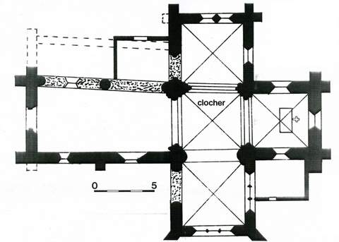 Le bras nord du transept et le chœur sont voûtés de croisées d’ogives remarquablement exécutées avec de très curieux chapiteaux. La grande fenêtre percée dans le mur oriental est également un beau travail de sculpture. Si les toitures sont en assez bon état, les murs goutterots et leurs contreforts menacent ruine. Il faut les reprendre entièrement. Le pittoresque de l’aspect extérieur de l’église y perdra mais sa conservation l’exige.