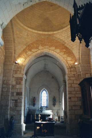 L’église paroissiale placée sous le vocable de Saint -Amant. Saint Amant, né à Bordeaux, vécut en ermite dans la forêt de Boixe ; plusieurs églises de l’Angoumois sont placées sous son vocable. L’église est située au centre du bourg, sur la rive gauche de la Tude. Construite au milieu du XIIe s., c’était une vicairie perpétuelle unie à l’abbaye de Nanteuil-en-Vallée. Elle devint ensuite église paroissiale ; le titulaire était décimateur de la majeure partie depuis au moins la fin du XVIe siècle. Le premier curé connu, vers 1160, est Géraud Cadouin, qui devint prieur de Puyfoucaud puis abbé de la Couronne. La nef rectangulaire, voûtée d’une simple charpente, est éclairée avec parcimonie. Elle n’a de remarquable qu’ un portail Renaissance, venu remplacer le portail d’origine qui subsiste à côté de lui, sur le mur nord. Son ornementation est simple, mais ses voussures s’harmonisent avec le reste de l’édifice. L’avant-chœur, voûté d’une coupole, porte un massif clocher carré épaulé par quatre puissants contreforts qui assurent aussi la cohérence entre la nef et le chœur-chevet. Ce dernier, moins élevé que la nef, à fond plat, est voûté d’ogives. Les murs nord et sud, surhaussés, portent la trace de la voûte de deux chapelles latérales, aujourd’hui détruites ; ils sont percés de fenêtres en arc brisé qui, avec la baie d’axe, assurent l’éclairage du chœur-chevet. L’ensemble de l’édifice est couvert de tuiles romaines. D’importants aménagements, à la fin du XIXe s., avaient modifié l’aspect intérieur: la restauration, menée entre 1860 et 1883, avait conduit à recouvrir les murs d’un enduit. Le maître-autel fut consacré par Mgr Cousseau en 1865. La sacristie fut construite en 1895; l’aménagement de la chaire à prêcher (1863) et l’achat de deux autels latéraux secondaires, dédiés l’un à la Vierge et l’autre à saint Joseph (1882), complétèrent le mobilier. La coupole a été restaurée en 1992; les travaux ont porté, en 1999, sur les travées du chœur, tant pour la couverture que pour les murs. Après suppression de l’enduit, la pierre apparut dans toute sa diversité, notamment la pierre de Richemont dont la couleur bleue s’est révélée fort esthétique. Pour la consolidation et la restauration du chœur, la Sauvegarde de l’Art français a accordé, en 1999, 180 000 F.
