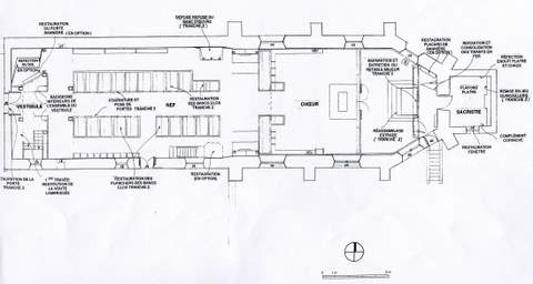 Au cours des travaux qui viennent de s’achever, la voûte lambrissée en très mauvais état a été entièrement refaite, les lambris complétés et réparés. De nombreux meneaux des vitraux du chœur ont dû être repris et des réseaux en grisailles placés dans les fenêtres ; un fragment ancien d’un saint Michel a pu être ainsi agréablement réinséré. L’ensemble est de grande qualité. La Sauvegarde de l’Art français a accordé en 2005 pour cette restauration une aide de 10 000 €.