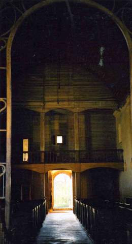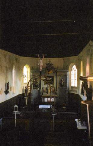 De cette réorganisation datent également les bancs clos qui ont été soigneusement réparés et les lambris d’appui qui tapissent les parois latérales du chœur. Au XIXe s., la séparation entre nef et chœur a été remplacée par un arc en fer forgé, la clôture ancienne a été utilisée dans la tribune placée au revers du mur occidental. Derrière l’autel, sur la portion du mur nord de l’abside, a été mise au jour au cours des travaux récents une grande figure peinte qui serait un saint Michel.