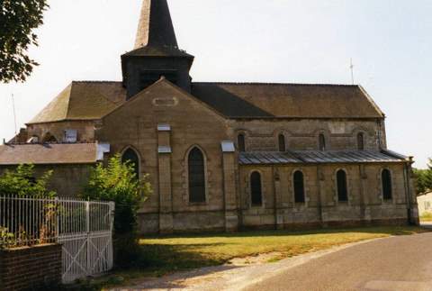 Eglise Saint-Aubin. L’autel de Saint-Aubin aurait été donné en 1133 par l’évêque de Soissons, Josselin de Vierzy, aux moines de Saint-Paulaux-Bois qui conservèrent le droit de présentation à la cure jusqu’à la Révolution. En 1137, la dîme fut restituée par Albéric de Chauny et Regnault, comte de Soissons, à l’évêque, qui la céda aux chanoines de Saint-Yves de Braine qui, à leur tour, la gardèrent jusqu’à la fin de l’Ancien Régime. Le village relevait depuis au moins le XIIIème s. de la seigneurie de Coucy, dont il suivit les vicissitudes, passant notamment entre les mains du duc d’Orléans en 1400.