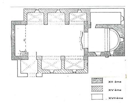 L’église paroissiale dédiée à saint Cyr et sainte Julitte était à l’origine un prieuré-cure, à la nomination de l’évêque-: C’est un petit édifice de 19 mètres de long, construit à l’époque romane, dont le chœur et l’abside sont parvenus intacts jusqu’à nous ; la nef actuelle et les six chapelles qui la flanquent datent du XVe s. L’abside, rectangulaire à l’extérieur, mais circulaire à l’intérieur, est rare dans la région. Elle est voûtée en cul-de-four et n’est séparée du chœur que par un léger décrochement du mur. L’entrée du chœur, à partir de la nef, offre un rétrécissement propre aux églises romanes de la contrée. On pénètre dans le chœur par une arcature en plein cintre faisant corps avec la voûte et s’appuyant sur le mur, sans former aucun ressaut. Dans l’abside s’ouvrent une baie romane à l’est et une autre au midi, sans arcatures ni colonne tt es. Au-dessus de l’arc triomphal s’élève un clocher à peigne percé de quatre ouvertures garnies de cloches, deux d’entre elles étant anciennes (1541 et 1655). L’église Saint-Cyr et Sainte-Julitte est inscrite à l’inventaire supplémentaire des Monuments historiques. La Sauvegarde de l’Art Français a accordé en 1990 une subvention de 50 000 F et en 1991 une subvention de 60 000 F pour la mise hors d’eau du clocher, du chœur et d’une partie de la nef.
