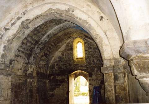 La visite de 1737 nous apprend que la baie, encore visible au-dessus de la porte d’entrée, était alors « grillée et vitrée a neuf ». Une baie identique perce façon symétrique le mur de l’abside ; en 1737, elle venait d’être « vitrée a neuf aux frais du moderne [actuel] commandeur ».