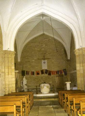 L’intérieur de l’église est beaucoup plus intéressant que l’extérieur. Son plan se compose de quatre travées, celle de l’ouest légèrement barlongue, les deux suivantes sensiblement carrées : trois belles voûtes d’ogives à liernes de style angevin reposent sur des piles composées. Une quatrième travée plus courte et plus basse, privée de son voûtement, est séparée du reste de l’édifice par un épais mur de refend établi en 1839 ; elle sert aujourd’hui de sacristie.