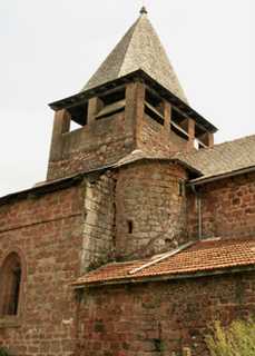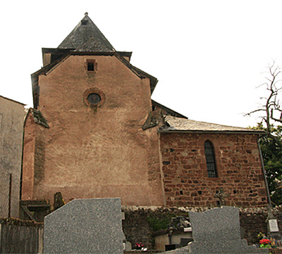 Essayons maintenant de faire parler les pierres. Nous sommes dans le vallon de Marcillac où la roche dominante est un grès rouge qui se prête assez bien à la taille. De la première construction il ne resterait qu’une partie de la nef, avec un mur sud bâti en moyen appareil, mais sans élément d’architecture caractéristique. Qu’il y ait eu à l’origine une voûte, cela est peu probable, au moins au premier regard : on aurait en effet conservé les contreforts en même temps que les murs. Quant au déversement de ces derniers, il semble être seulement le fait de fondations mal assurées. La tradition parle d’un incendie provoqué en 1568 par les protestants. Celui-ci pourrait avoir endommagé la charpente de la nef et le clocher. On suppose que le plafond actuel a été placé vers 1763. Le chœur, la croisée du transept, sur laquelle s’élève le clocher, et les deux chapelles qui constituent les bras du transept sont tous les quatre de plan carré et voûtés d’ogives. Les ogives qui partent des quatre piliers porteurs s’élancent de ces derniers sans rupture, selon le style du début du XVIe siècle. Le chœur est décoré d’une niche-retable avec arc en accolade. La clé de voûte est ornée du monogramme IHS aux lettres entrelacées. Des bancs de pierre ont été établis le long des murs latéraux. La chapelle sud renferme également une niche-retable avec arc en accolade, un banc de pierre lui faisant face. Les armoiries du fondateur, à trois fasces (parfois quatre), sont reproduites avec insistance – sept fois – dans la pierre ! Deux au retable, deux sur les piédroits de la piscine, une à chaque culot du mur sud, une à la clé de voûte[1].