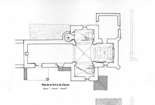 La construction du clocher, entreprise après les guerres de Religion, au début du XVIIe s., paraît avoir été improvisée par le maçon sans une juste appréciation de la structure sous-jacente. Il est en effet de forme barlongue et établi sur une croisée carrée ! Si ses murs est et ouest reposent normalement sur les arcs doubleaux, les murs sud et nord s’appuient sur les voûtains des deux chapelles, bien moins résistants. Au fil du temps, le poids des murs a provoqué des fissures dans les voûtains ainsi que dans le clocher et dans l’escalier à vis. Par effet collatéral, la chapelle sud a bougé au point que l’on a dû retenir un de ses angles par un contrefort épais et disgracieux. La chapelle nord n’était pas dans un meilleur état. Il y avait urgence à corriger le défaut de construction du clocher et à endiguer l’affaissement des deux chapelles.