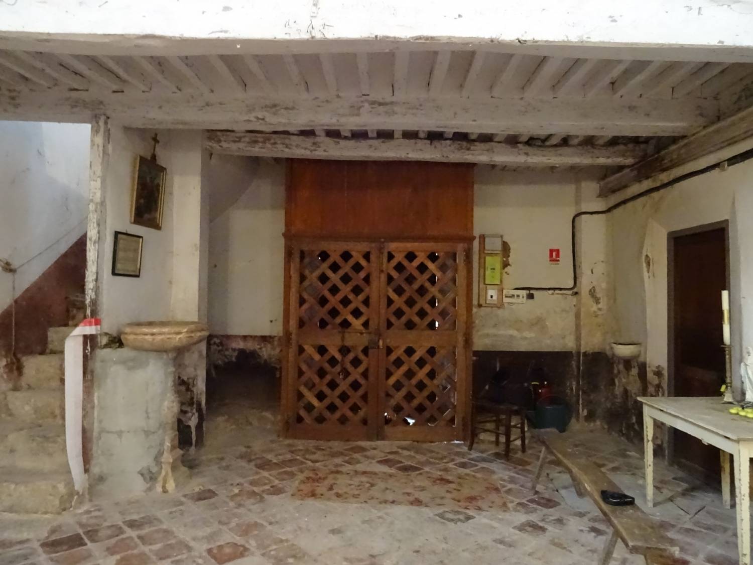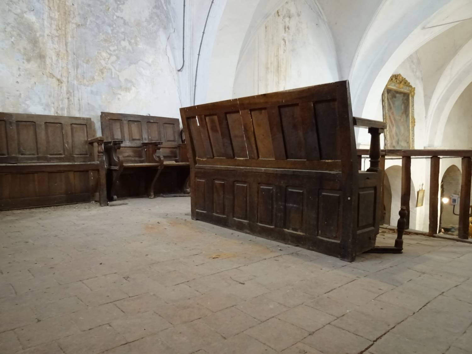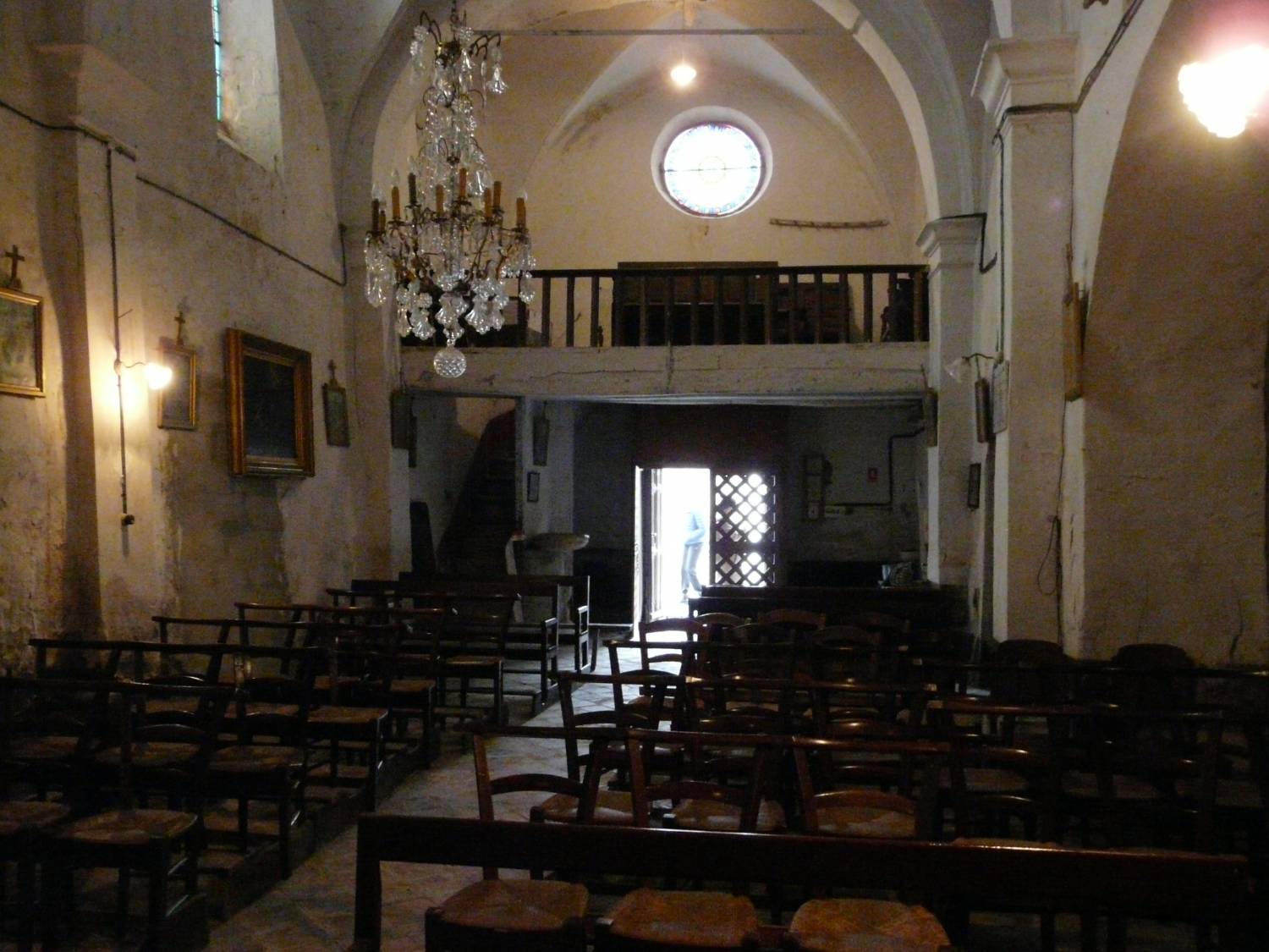 A l’intérieur, la travée occidentale de la nef reçoit une tribune en bois accessible par un escalier édifié contre le gouttereau sud. Au nord du chœur, une petite porte donne accès à la base de la tour-clocher.