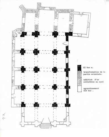 L’église Saint-Julien constitue l’ancienne chapelle castrale d’une petite localité située sur une éminence dominant à quelque distance le val d’Allier. Le château fort a disparu, laissant la place à une demeure plus confortable, aujourd’hui transformée en maison de retraite. Ce petit monument, orienté, remonte pour ses parties les plus anciennes au XIe siècle. Le mur sud, présentant une épaisseur de plus d’un mètre, témoigne de l’ancienne destination militaire du site. L’ensemble fut toutefois très remanié ultérieurement. Il comporte une nef centrale de quatre travées, voûtée d’un berceau en plein cintre sur doubleaux et flanquée de bas-côtés voûtés en quart de cercle, avec des doubleaux en plein cintre. Cette disposition est fort courante dans l’ancien diocèse de Clermont, mais, ce qui est beaucoup plus rare, c’est qu’elle présente aussi un éclairage direct de la nef centrale, assuré par des fenêtres ouvrant au-dessus des arcs formerets. Il semble que l’abside originelle et les absidioles aient disparu, remplacées par les constructions actuelles, qui remontent à l’époque, difficile à préciser, où l’on rajouta un second bas-côté au nord et une travée supplémentaire à l’ensemble du côté ouest. Le clocher à base carrée se trouve sur la première travée romane de la nef et conserve deux petites baies en plein cintre. Bien qu’il ait été très remanié, sa silhouette harmonieuse contribue à la qualité paysagère de l’ensemble du site de Saint-Gérand-le-Puy. La Sauvegarde de l’Art français a apporté une contribution de 40 000 F en 1999 pour aider à la réalisation des travaux de restauration des couver tures de la nef et des bas-côtés nord et sud. La première tranche a consisté en la réfection de la couverture de la première travée de l’église à partir du chœur.