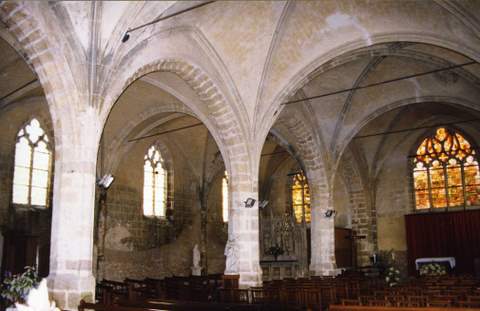 Un bas-côté a été prévu du côté sud, peut-être réalisé et non rétabli après les dégâts du XVIe siècle. Les voûtes sur croisées d’ogives datent de la restauration du milieu du XIXe ; à l’origine, la nef principale au sud était couverte de voûtes lambrissées en carène dont les éléments subsistent au-dessus des voûtes de brique et plâtre.
