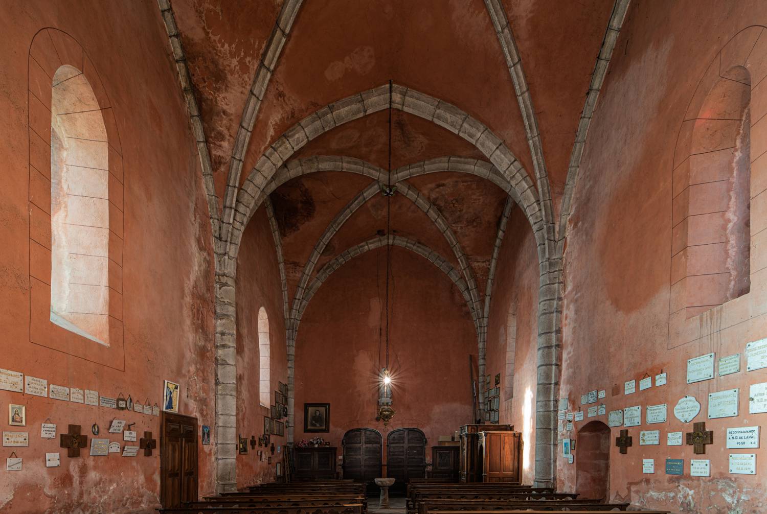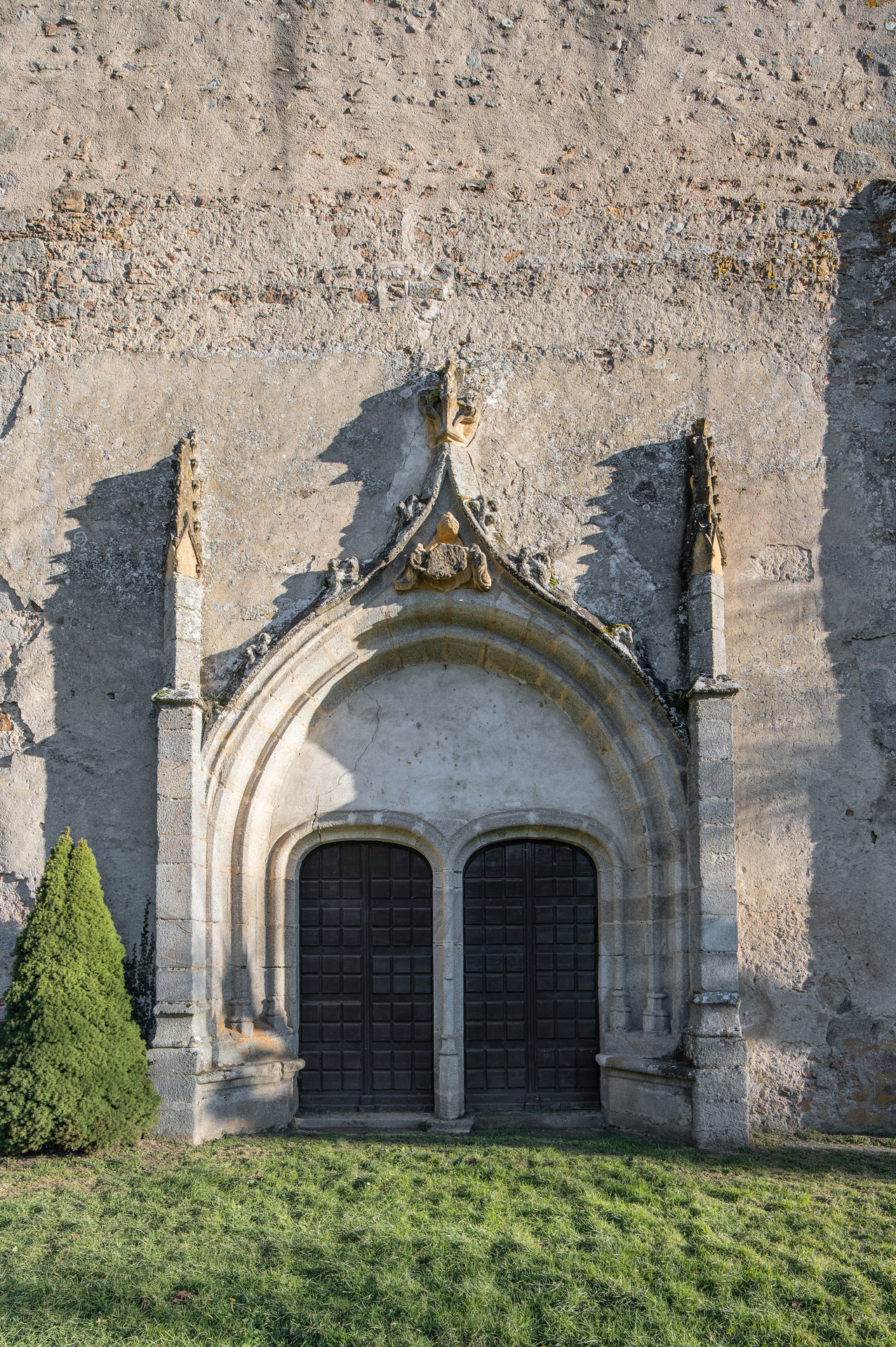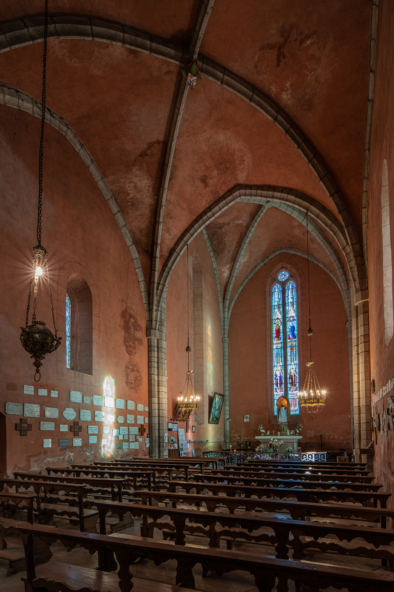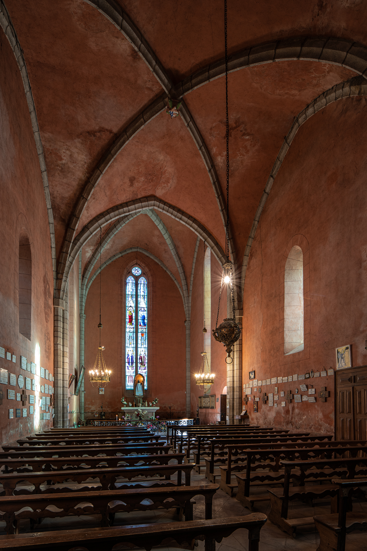 Après une longue interruption du chantier, une première campagne s’attacha à « élever une vaste salle rectangulaire que l’on couvrit d’un berceau brisé en charpente ». Puis on reprit l’ancien projet : voûter la nef sur deux croisées d’ogives. Cette réalisation exigea quelques aménagements comme la réduction des hauteurs et le raccourcissement des travées, etc. Quant à la façade ouest, elle vint équilibrer l’élévation du chevet. Ces travaux peuvent être datés par une clé de voûte aux armoiries de Catherine de Polignac, entre son mariage avec Pierre II d’Urfé en 1487 et sa mort en 1493. L’achèvement d’un chantier débuté vers 1286 est à situer entre les deux dates.
