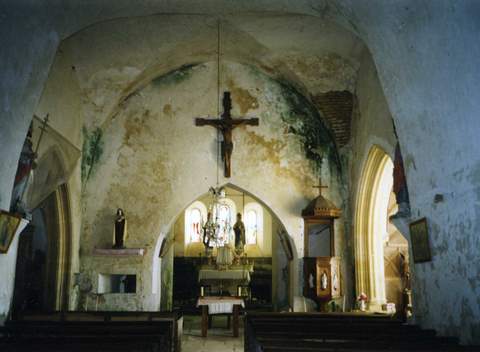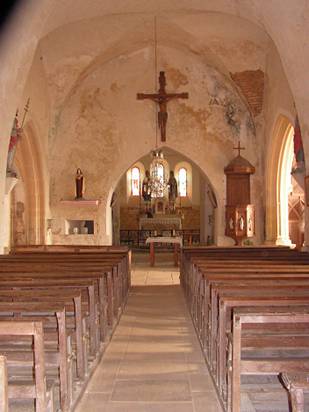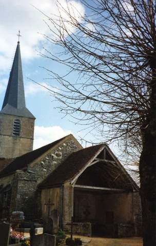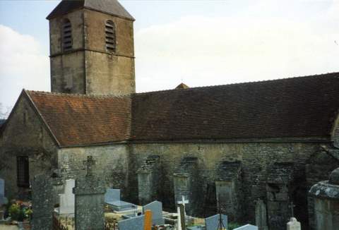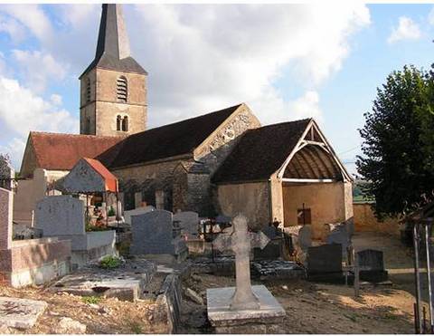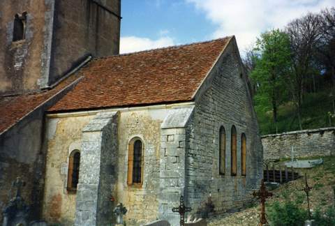 A l’emplacement actuel de l’église existait probablement un sanctuaire mérovingien attesté par un don fait par Jonas, évêque d’Autun en 858. Une chapelle, dédiée à saint Germain d’Auxerre, pourrait être à l’origine du chœur actuel. Celui-ci fut remanié au XIIème s. : il fut alors voûté en berceau et fermé par un chevet plat à trois baies. Les travaux se poursuivirent au XIIIème s. avec la construction d’une nef plus vaste, à laquelle on adjoignit par la suite un transept puis un porche à la fin du XVème siècle. La nef unique est couverte d’une voûte en berceau, éclairée par des baies en plein-cintre. Les chapelles latérales formant un transept sont couvertes de voûtes à liernes et tiercerons, celle du nord avec un tracé plus géométrique que celle du sud aux courbes plus accusées. Les arcades qui donnent sur la nef sont à moulures prismatiques dans la tradition du gothique flamboyant pour l’une et à moulures déjà classiques pour l’autre. Cette différence de style se retrouve dans le décor des piscines liturgiques qui flanquent chaque autel, ainsi que dans les remplages des baies. Un hagioscope est pratiqué dans le mur séparant la croisée de transept et la première travée de chœur ; cette travée, couverte d’un berceau plein-cintre supporte la tour de clocher. Le beffroi, de plan carré, est ouvert sur chaque face par des baies géminées retombant sur une colonnette à chapiteau feuillagé. La sacristie, qui flanque le clocher au sud, est décorée de peintures murales du XVIIème s., à décor de feuillages. La Sauvegarde de l’Art Français a octroyé en 1995, pour la restauration du clocher, des couvertures et des maçonneries extérieures des chapelles formant transept, avant-chœur et chœur, une subvention de 50 000 F.