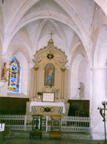 À l’intérieur l’œil est guidé vers le maître-autel qui occupe le fond du chœur. D’importants travaux ont été réalisés dans cette partie de l’édifice au XVIIIe s., comme l’indique une inscription datée de 1741.