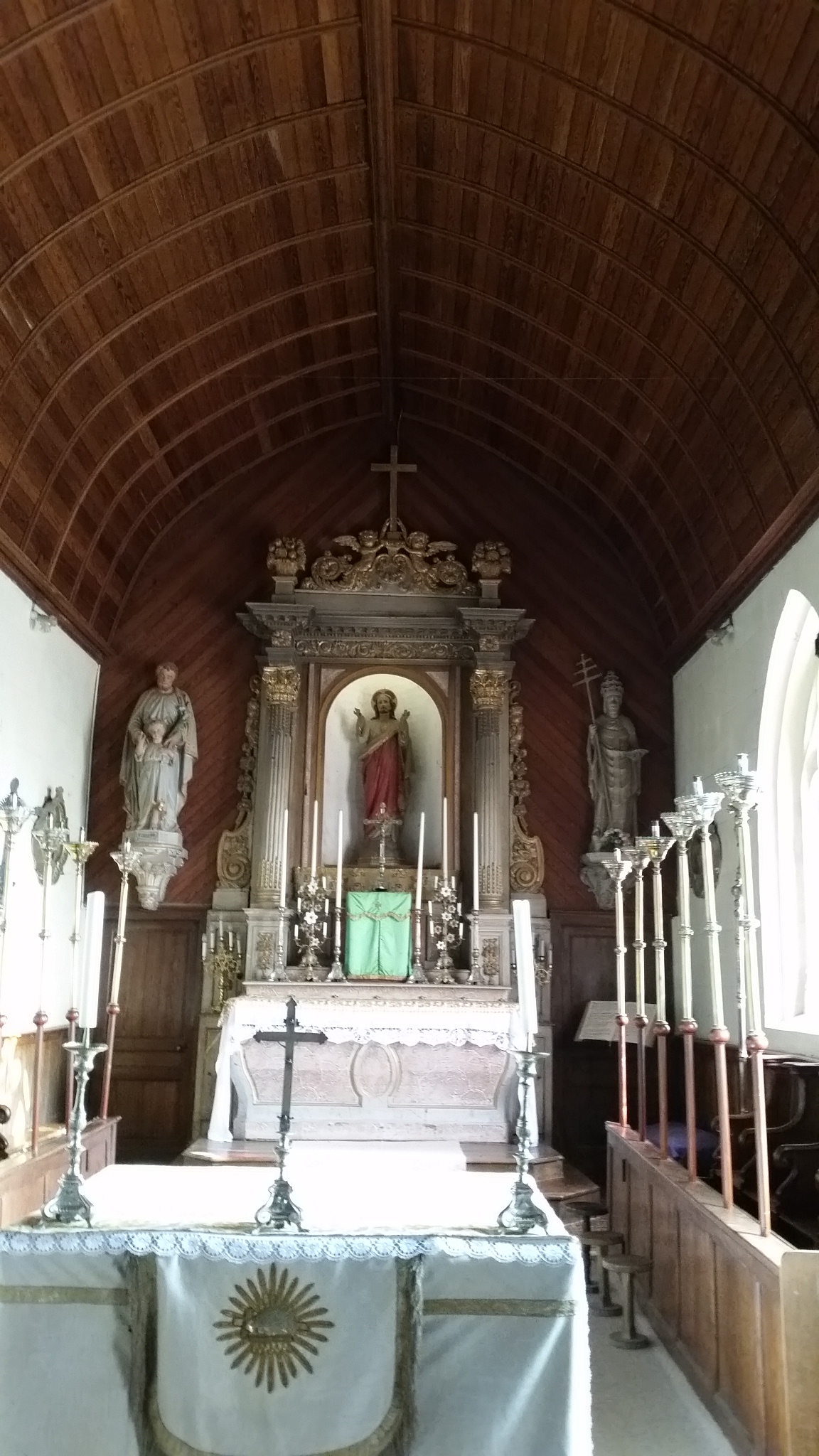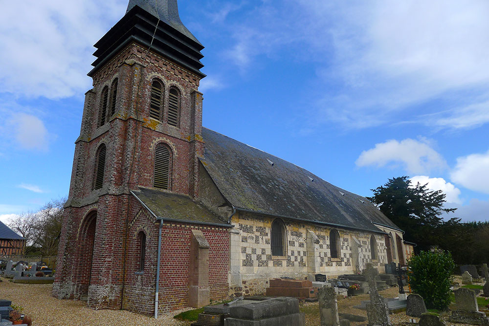 Cette jolie église de campagne est dotée d’un plan rectangulaire composé d’une nef en maçonneries alternées de silex et de calcaire formant décor.