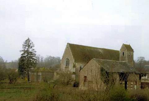 Placée sous le vocable de saint Hilaire, cette paroisse a été donnée par Gannelon de Montigny, seigneur du lieu, à l’abbaye de Marmoutier vers 1042. Sa reconstruction date probablement de cette époque ; elle devint alors un prieuré. L’église comporte une nef rectangulaire terminée par un chœur à chevet plat. L’examen des maçonneries révèle aisément deux époques de construction distinctes : l’époque romane et la Renaissance. Bâtie en moellons de silex avec enduit, la partie ouest de l’édifice paraît en effet dater du XIe s. ou du XIIe siècle. Une corniche en calcaire portée par des corbeaux assez frustes souligne la base du toit. Au sud, deux étroites fenêtres romanes évasées vers l’intérieur éclairent la nef. Au nord, les baies ont été remaniées et agrandies postérieurement. Sur ce même côté, une porte romane a été murée ; elle permettait de faire communiquer l’église avec un bâtiment dont subsistent des traces d’arrachement.