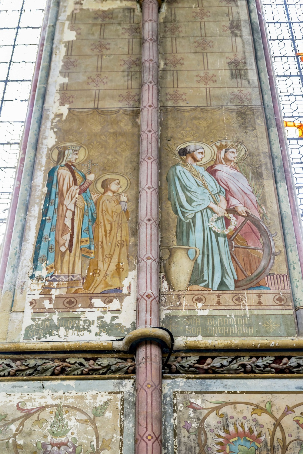 En 1887, des travaux de consolidation interviennent, le tuffeau se fragilisait à cause des intempéries et une sacristie est adjointe qui renforce l’ensemble de l’édifice. A partir de 1894, le frère Fulbert , artiste peintre allemand, réalise une décoration intérieure en s’inspirant, dit–on, des peintures de Saint–Germain–des–Prés. En 1946, furent transférés dans la chapelle les reliques de Saint–Léon.