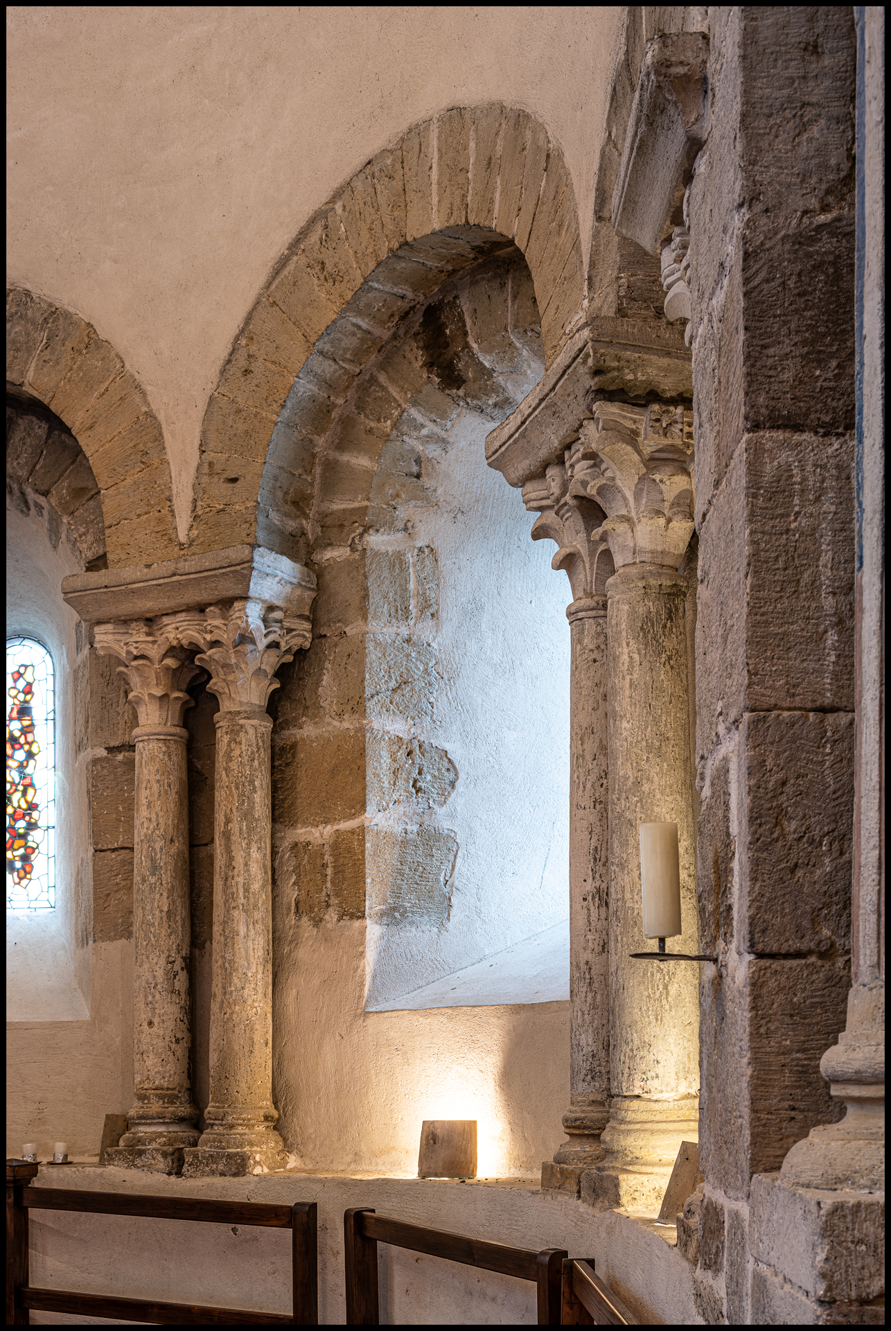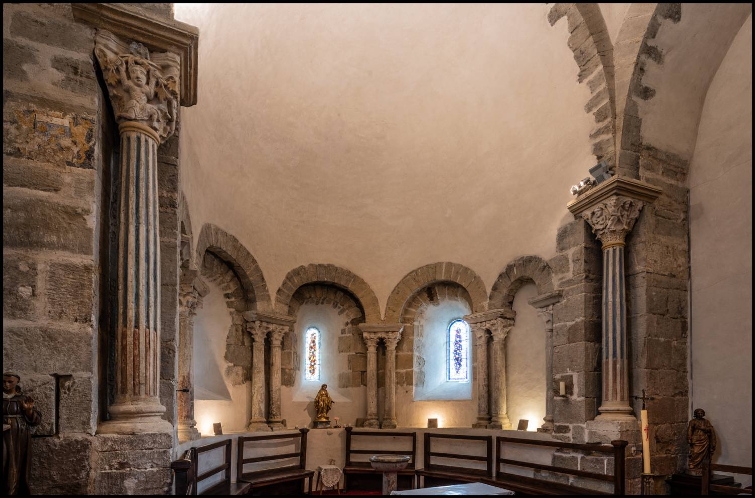 Église Saint-Pierre, autrefois paroissiale, aujourd’hui annexe de l’église paroissiale Saint-Just. Le simple examen d’un dossier bien documenté peut révéler, de façon inattendue, un fait archéologique important, susceptible d’accroître nos connaissances. Tel est le cas de l’église Saint-Pierre de SaintJust-Chaleyssin. À l’exception de la voûte de bois de la nef qui ne date que du siècle dernier, l’ensemble de l’édifice remonte sans contestation possible à une date déjà avancée dans le xiie s. Cependant, on voit à l’extérieur de l’édifice dans le mur nord les restes d’une porte murée, très simplement construite, qui remonte à une date antérieure. Le dégagement de cette porte permettrait peut-être de préciser son âge. Il faudrait également chercher à préciser à travers les enduits récents si tout le mur nord où fut jadis ménagée cette entrée n’est pas également plus ancien que le xiie s. Mais les constatations les plus surprenantes se font à l’intérieur du faux transept et dans l’abside hémicirculaire qui font suite à la nef. À chaque angle du faux transept se dressent des colonnes cannelées, de marbre ou de pierre dure, avec base et astragale, apparemment antiques. Ces colonnes cannelées mesurent 2,60 m de hauteur. À l’intérieur de l’abside, ce sont des colonnettes de même nature mais sans cannelure et ne mesurant que 1,45 m de hauteur qui supportent les retombées d’une arcature aveugle. L’arcature aveugle est romane comme apparemment toute la maçonnerie de cette partie de l’église, mais on a voulu, très manifestement, utiliser au maximum des vestiges de l’église primitive. On a même été jusqu’à copier ou reproduire leur disposition, en jumelant deux colonnettes et en coiffant celles-ci d’un unique tailloir, disposition qui rappelle de façon exemplaire ce que l’on voit dans la crypte de Saint-Laurent de Grenoble ainsi que dans le sanctuaire de l’église du palais de Théodulf à Germigny-des-Prés. La crypte de Saint-Laurent de Grenoble est probablement légèrement antérieure à ce petit édifice. Dans leur ensemble, chapiteaux et tailloirs sont romans mais d’après la photographie, peut-être trompeuse, on peut se demander si deux chapiteaux, au Nord, ne sont pas contemporains des colonnettes. Celles-ci, avec bases et astragales, sont manifestement contemporaines des grandes colonnes cannelées. Nous demandons à Madame Chatel, notre déléguée régionale, spécialiste de l’architecture de placage depuis ses études sur Saint-Laurent de Grenoble et Saint-Pierre de Vienne, de chercher à approfondir les problèmes que l’on peut poser mais non résoudre sur la seule vue d’un dossier. L’église de Saint-Pierre de SaintJust-Chaleyssin, pour la restauration de laquelle la Sauvegarde de l’Art français a accordé une subvention de 20 000 F, mérite d’être classée parmi les monuments historiques et elle fera certainement un jour l’objet de fouilles importantes. Elle nous renseigne sur deux points de l’histoire de notre architecture, la date approximative du monument préroman contemporain de la crypte de Saint-Laurent de Grenoble et, d’autre part, sur le souci de certains architectes du xiie s. de conserver ou de continuer les techniques du passé.