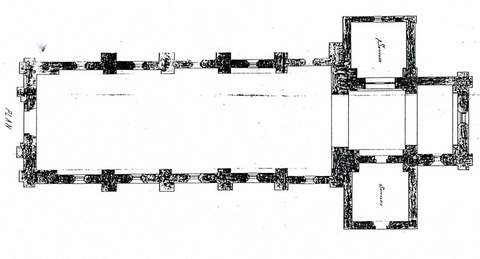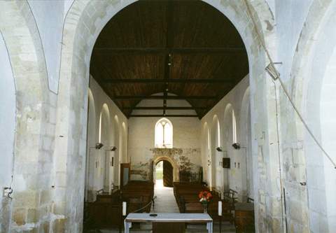 La nef, unique, entièrement refaite au XIXème s., est couverte d’une voûte de bois en berceau. Elle est éclairée par des fenêtres en plein cintre ouvertes sous de grandes arcades formant arcs de décharge.