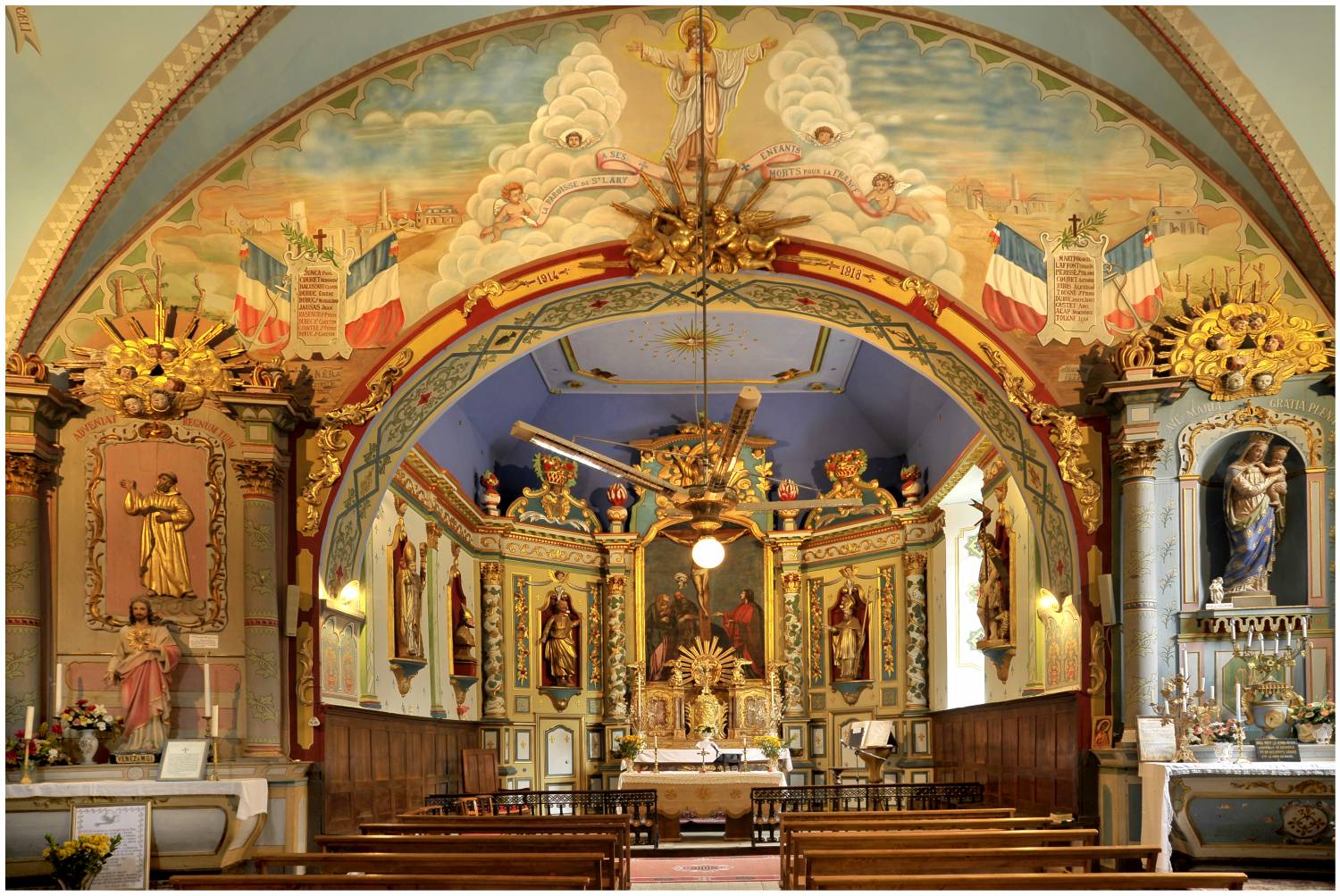 Église Saint-Hilaire. Les mentions de Saint-Lary, qui faisait partie de la châtellenie de Castillon, sont rares avant le XVIe siècle. Le village, qui connut la prospérité au XIXe s. grâce à ses mines d’argent et de plomb et à ses ardoisières, s’allonge en fond de vallée à l’extrémité occidentale du Couserans et du département de l’Ariège ; l’église est construite au carrefour de la route menant vers le col du Portet d’Aspet. Il est difficile de proposer une datation pour l’édifice, son aspect général étant principalement marqué par les aménagements des XVIIe, XVIIIe et XIXe siècles.