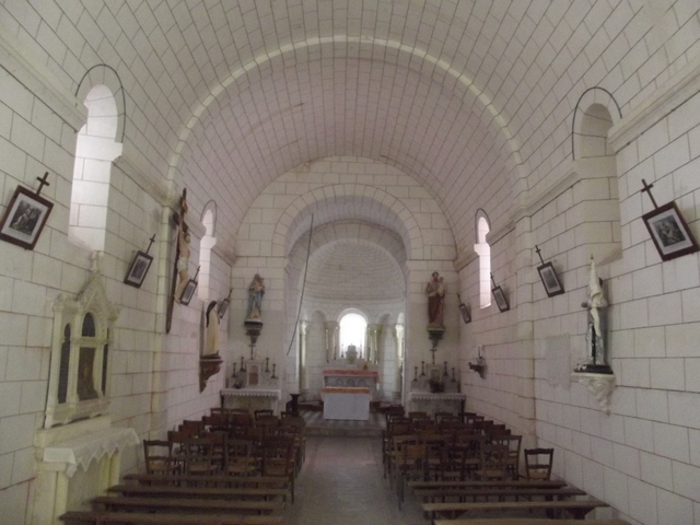 Cette petite église était-elle, à l’origine, pourvue de croisillons ? L’appareil assez grossier qui ferme, au nord, le carré sous clocher et contraste nettement avec celui du mur nord de la nef, pourrait le faire penser. Du côté sud, toutefois, un mur, construit extérieurement au XIXe s., avec beaucoup de régularité, dissimule entièrement les maçonneries anciennes que d’épais enduits ne permettent pas d’examiner sur leur face intérieure. La position des colonnes, dans les angles du carré, et la forme des fenêtres, fortement ébrasées, que borde, à l’intérieur, un discret cordon, ne plaident pas véritablement en faveur de l’existence d’un transept.
