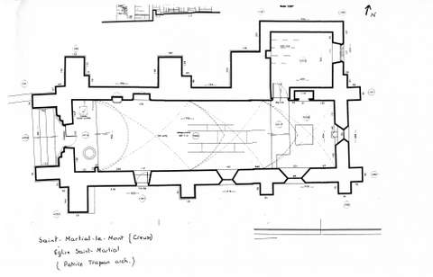 Église paroissiale, sous le vocable de saint Martial. Le patronage appartenait à l’abbaye voisine du Moûtier d’Ahun.