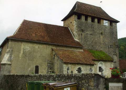 L’édifice, placé dans un couloir de circulation des troupes anglaises basées à Labastide-Murat, fut fortifié au XIVe ou au XVe s. pendant la guerre de Cent Ans ; ainsi fut érigé un immense clocher constitué de niveaux planchéiés, lieu de refuge pour la population. De larges créneaux complétés initialement d’un hourd permettaient d’assurer le guet et la défense du petit bourg autrefois enserré d’un rempart.
