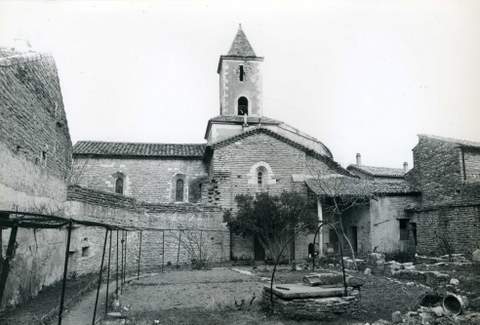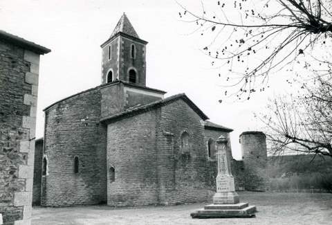 Église paroissiale, ancienne chapelle d’un prieuré de religieuses bénédictines fondé au XIIe s. par l’abbaye de Saint-André-le-Haut à Vienne. Remarquablement conçu et construit, ce petit édifice roman mériterait d’être classé. Comme nous le fait connaître notre délégué régional, M. l’Abbé Charay, le prieuré eut à sa tête des moniales illustres, comme Marie d’Ornano et Louise d’Ornano. Notre délégué ajoute : « Comme l’église voisine de Sauveplantade, la chapelle se compose d’une minuscule nef de deux travées voûtées d’arêtes et d’un transept saillant dont les bras sont terminés à l’est par des absidioles encadrant l’abside du chœur. Une coupole couvre le carré du transept. Une série d’arcatures soutenues par des colonnettes dont quelques-unes ont des chapiteaux historiés, décore le chœur. L’extérieur de l’église reproduit exactement le plan intérieur de l’édifice. L’ensemble est du XIIe s. Cependant, la façade, la nef et le clocher carré placé au-dessus de la coupole ne datent que du XIXe s. Le cloître a disparu. » La Sauvegarde de l’Art français a accordé une subvention de 33 000 F pour être consacrée à la réfection des toitures.