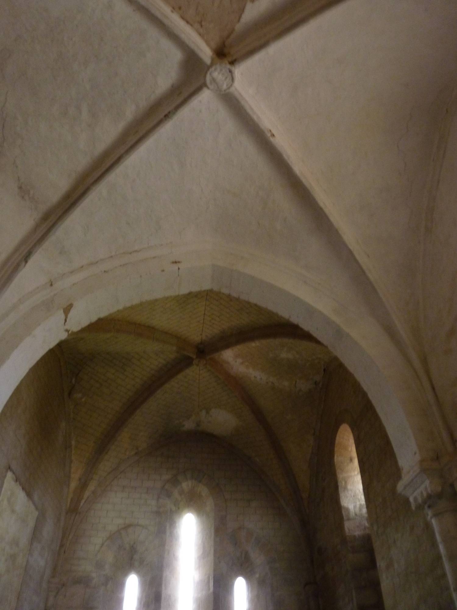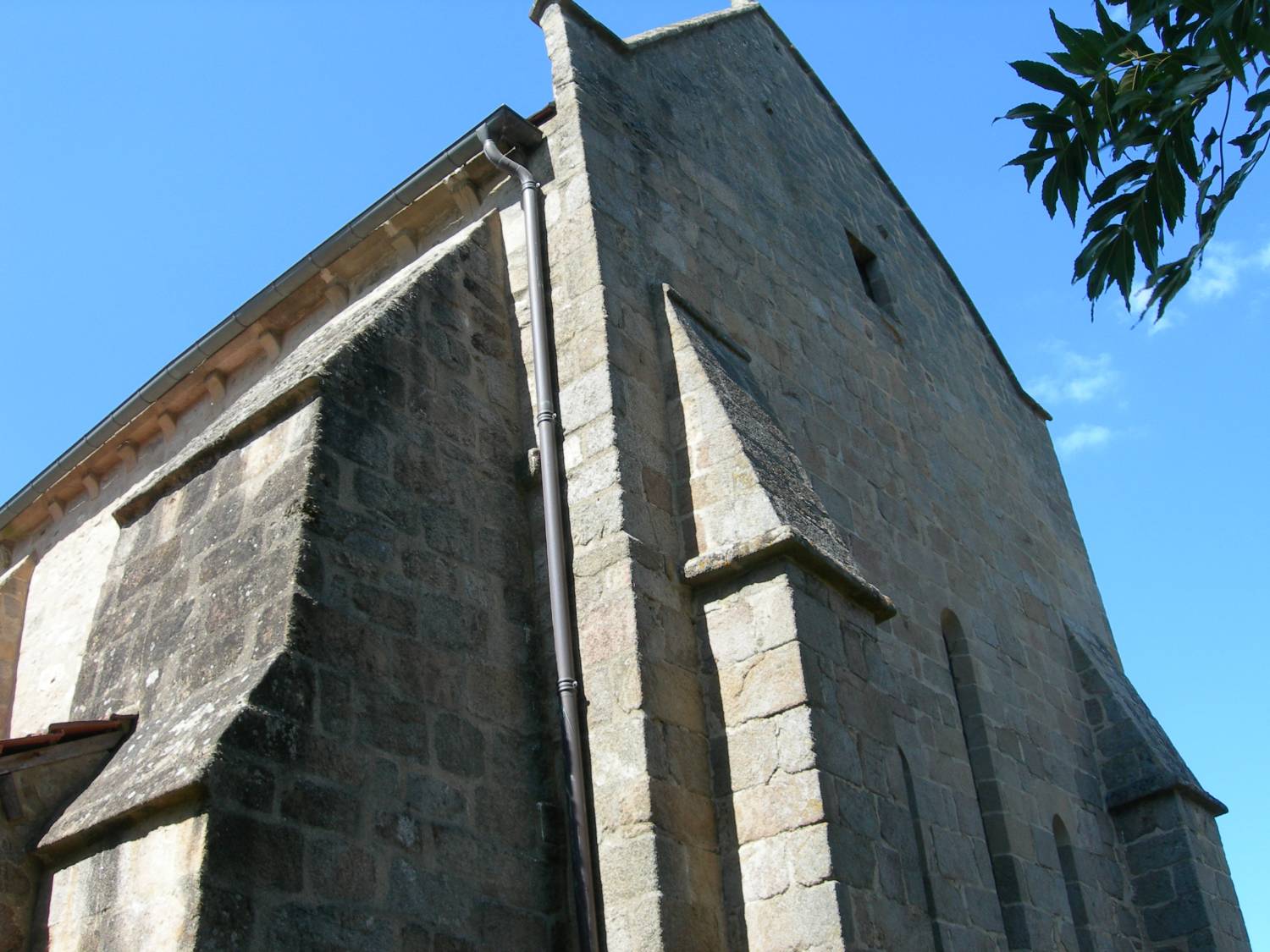Une fois passé ce porche d’entrée, couvert en bardeaux de châtaignier, se déploie un portail polylobé, « petit cousin » du majestueux portail occidental de l’église Notre-Dame de La Souterraine, édifice voisin. Composé de trois voussures et de cinq polylobes à redent et agrémenté de chapiteaux simplement épannelés, le portail d’entrée est surmonté d’une corniche à modillons sculptés de masques. Extérieurement, l’église, qui n’a pas de clocher, est scandée de contreforts plats à glacis, renforcés postérieurement. Elle est éclairée de baies en plein cintre. A l’est, elle se termine par un chevet plat à triplet. A l’intérieur, une tribune du XVIIe s. occupe la première travée. En 1938, la nef a été scindée entre la deuxième et la troisième travée par un mur diaphragme composé d’une maçonnerie de moellons, afin de pallier l’affaissement de l’arc doubleau. Ce mur a été détruit lors des travaux de restauration pour retrouver le volume intérieur d’origine. Les murs gouttereaux des trois premières travées de la nef sont rythmés par des arcs aveugles. La nef est voûtée d’ogives de profil torique qui retombent pour les trois premières travées, sur des pilastres, et, pour la travée du chœur, sur des colonnes engagées à chapiteaux à crochets, chaque support étant accosté de consoles décorées de masques ou de feuillages. Des clés de voûtes ornent trois travées : une roue de pétales pour la seconde, un Agneau pour la troisième, une main bénissante pour la quatrième.