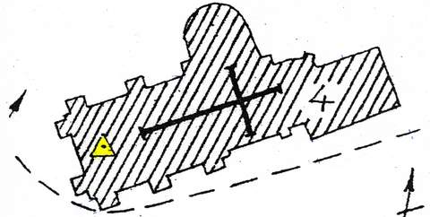 Une petite porte ouvre au sud dans la première travée ; elle est en anse de panier et garnie d’un vantail qui porte la date de 1670.