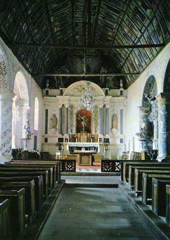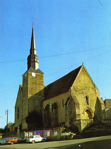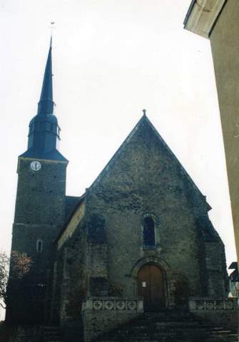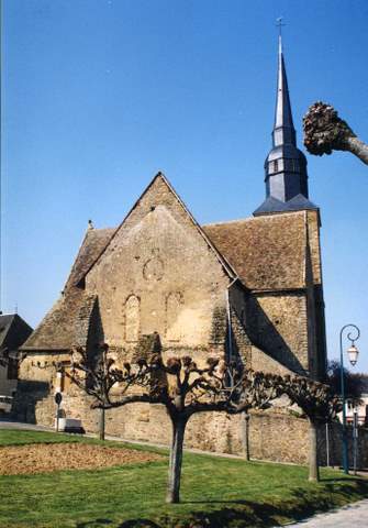 Le village se situe à 25 km environ du Mans, et à 10 km au sud-est de Connerré. C’est un lieu de vieux peuplement attesté dans un acte du IXème siècle. La cure était à la collation de l’évêque du Mans. L’église située à l’est du bourg est dominée par une haute flèche d’ardoise de section polygonale qui s’élève au-dessus d’un clocher carré, situé dans l’angle nord-ouest du transept. Les deux niveaux du clocher sont séparés par deux bandeaux de pierre de taille. L’édifice est construit en petit moellon du pays, les angles en pierre de taille. Extérieurement, il se présente comme une église à transept et à chevet plat. D’épais contreforts épaulent les façades nord, est et ouest. La porte d’entrée à l’ouest, très simple, est dans le style de la fin du XIIème s , avec un arc légèrement brisé ; elle est surmontée d’une baie en plein-cintre. La balustrade précédant le porche est du XIXème siècle. A l’intérieur, le transept est en fait constitué par deux chapelles s’ouvrant sur la nef par deux arcades que l’on peut dater du XVIIème siècle. L’intérieur de cette église est caractérisé par la haute voûte lambrissée peinte de trois cent soixante-cinq figures de saines. Ce décor est du XIXème s. mais a sans doute repris une décoration antérieure plus simple, dont on peut voir quelques vestiges très altérés dans les chapelles. Le chœur et chaque chapelle possèdent un retable classique à fronton, orné de colonnes et de niches, comme on en rencontre beaucoup dans cette région. Cependant l’élément mobilier le plus remarquable est sans doute une chaire à prêcher en bois qui surmonte une base en pierre sculptée : un guerrier antique barbu agenouillé sur le sol, datant sans doute du XVIème s., supporte un cul-de-lampe très décoré, dont le couronnement porte la date de 1669, date probable de sa restauration. Le fond de la chaire est orné de colonnes torses et d’une niche du XVIème siècle. L’angle ouest de la chaire est décoré d’un angelot de belle facture. Dans la chapelle nord une piscine très décorée en pierre est datée de 1543.