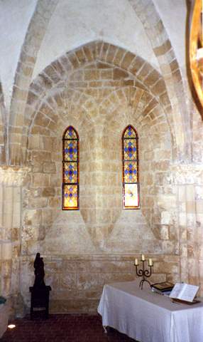 Construite en moellons et en pierres de calcaire tendre, la chapelle actuelle, récemment réhabilitée, se trouve enserrée aujourd’hui dans un réseau dense d’habitations. De plan carré, le chœur, était, à l’origine, éclairé par quatre baies, dont deux géminées, percées dans le mur du chevet. Plusieurs d’entre elles ont été malencontreusement bouchées et le parti suivi pour la restauration du bâtiment s’est attaché à restituer certaines des ouvertures d’origine et à traiter les comblements maintenus. L’espace est couvert d’une voûte sur croisée d’ogives réalisée à une époque légèrement postérieure. On remarquera la qualité des sculptures et des modénatures : les colonnes engagées s’appuient sur deux rangs de dosserets à arêtes vives ; les ogives sont formées de trois tores ; ogives et formerets retombent sur les chapiteaux à feuillage des colonnes engagées, au nombre de trois à chacun des angles.