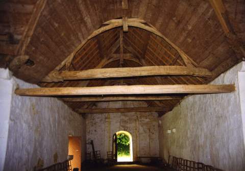 A l’intérieur, on note le décor très savoureux de certains entraits : l’engoulé par des dragons, d’autres ornés de têtes de dragons aux extrémités et au milieu. Les sablières sculptées ont subsisté dans le bras sud du transept et dans le chœur où un cartouche représente les Cinq-Plaies. Aux angles du carré du transept, les blochets représentent les quatre évangélistes.