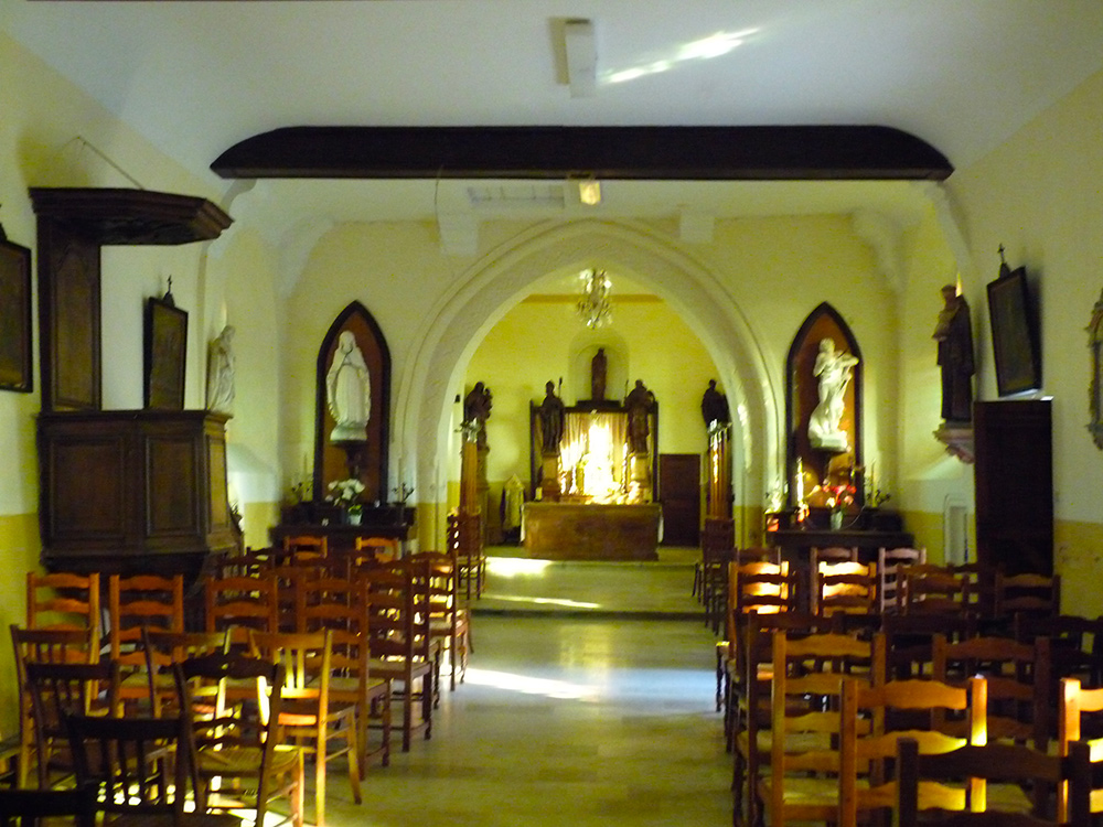 L’église est composée d’une nef de trois travées en moellons de silex et d’un choeur, en retrait, de trois travées à chevet plat. Une sacristie à pans coupés est adossée au mur est du choeur. Les couvertures sont en ardoises.