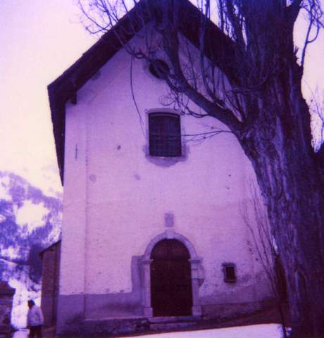 La rigueur du climat a imposé à la façade une certaine sévérité : peu d’ouvertures et limitées. Le petit oculus percé dans le pignon est destiné à éclairer le comble. On a fait en outre déborder largement l’avant-toit afin de protéger les murs, notamment au-dessus de l’entrée, orientée au sud. Le cimetière s’étend contre le mur ouest.