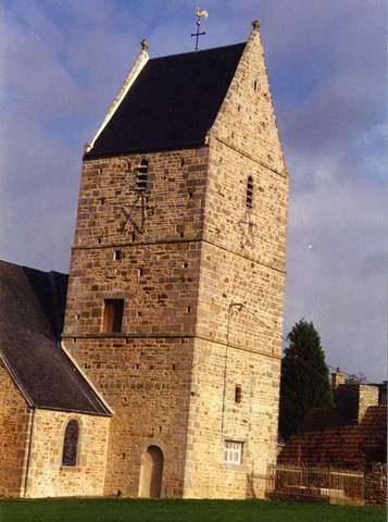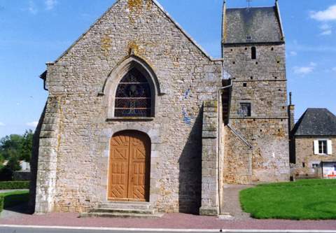 L’église de Sai ne-Pierre-Langers affecte en plan la forme d’une croix latine. La nef, vaisseau unique simplement charpenté, close à l’ouest par un mur -pignon, elle s’élargit à son extrémité orientale par l’adjonction de deux chapelles latérales. Le transept, saillant, pourvu d’un clocher au sud, précède le chœur qui est réduit à une travée barlongue peu profonde. Forcement endommagée par une violente tempête au XVIIe s., l’église subit d’importantes restaurations qui se poursuivirent au siècle suivant : les clefs de deux baies portent le millésime de 1742. Le percement du portail occidental actuel qui n’est pas antérieur au XVIIIe s. à faire disparaître la partie inférieure de la grande baie en arc brisé qui le surmonte. D’importantes restaurations touchèrent l’église et son clocher au XIXe s. Entre 1830 et 1837, le commandant Louis-Jean-Baptiste Mayaux-Doual, architecte à Granville, effectua la remise en état du bâtiment. Le clocher, qui est l’élément le plus intéressant de l’église, s’élève curieusement à l’emplacement du bras sud du transept. Il peut être rapproché d’ une série de clochers du XVIIe s. dans la région, caractérisés par leur grande sobriété. Appareillé en granit, avec chaînage d’angles et petits moellons soigneusement assisés, il se compose de trois niveaux carrés, séparés par des bandeaux en légère saillie. On distingue des baies obturées au premier niveau, une porte dans le mur ouest et, surtout, une grande arcade en plein cintre dans le mur sud qui pourrait témoigner de l’existence d’un étage faisant office de tribun e ouvrant sur l’intérieur de l’église. Le berceau plein cintre qui couvre ce niveau s’accorderait bien avec cette fonction. Le second niveau est éclairé seulement par un petit oculus dans le mur sud, il est charpenté. La porte percée dans le mur ouest et donnant dans le vide fait penser qu’il servait de magasin de stockage. Enfin, sous le toit et descendant juste au-dessous de l’appui des petites baies en plein cintre se trouve le beffroi. L’église conserve une chaire qui porte la date de 1759. La Sauvegarde de l’Art Français a accordé en 1994 une aide de 90 000 F pour la poursuite de la réfection du clocher.
