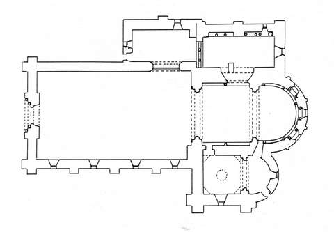 Vers la fin du XIIe s., la grande tour-clocher fut élevée au-dessus de la travée droite de l’absidiole sud, munie dans ce but d’une coupole.