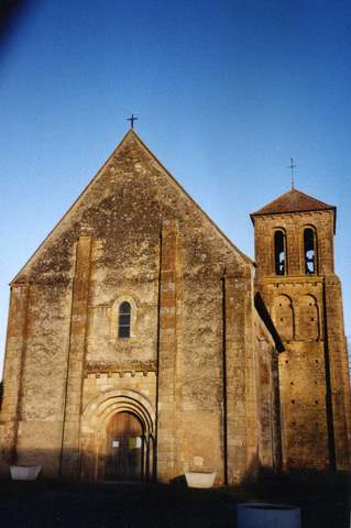 L’église de l’ancienne paroisse de Saint-Pierre-les-Étieux ne mérite pas l’espèce d’abandon dans lequel elle a été tenue depuis des décennies. Abordée par son flanc sud, elle se présente comme un édifice roman de bonne apparence, doté d’une tour-clocher solidement plantée à côté du chœur. Un examen plus attentif soulève des problèmes difficile s à résoudre dans l’état lacunaire des connaissances. En comparant l’aspect actuel avec un dessin publié par Buhot de Kersers en 1885, on constate d’abord que l’homogénéité apparente de l’appareil extérieur avec ses petites baies sous un larmier continu est le résultat d’une restauration plus récente et surtout que la tour-clocher, qui présente aujourd’hui trois étages couverts d’une toiture en pavillon, a perdu dans cette opération un étage supplémentaire surmonté d’une superbe flèche octogonale formée d’une haute pyramide d’assises de pierres, garnie sur ses arêtes de discrets boudins et cantonnée de quatre clochetons. La hauteur totale de la tour jusqu’à la pointe de la flèche allait à 45 m, dont il reste à peu près la moitié. On ne peut que regretter amèrement la disparition de ce superbe morceau d’architecture, comparable à la flèche du clocher de Notre-Dame d’Étampes, pour ne pas parler de celle de Chartres.