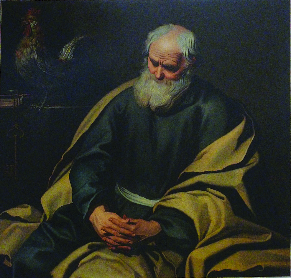 Il s’agit de la représentation du moment où saint Pierre, l’un des deux premiers disciples du Christ, se repent d’avoir renié le Christ, comme Jésus le lui avait prédit : « En vérité je te dis, qu’en cette même nuit, avant que le coq ait chanté, tu me renieras trois fois ». On remarque la présence du coq sur le tableau dans le coin supérieur gauche.