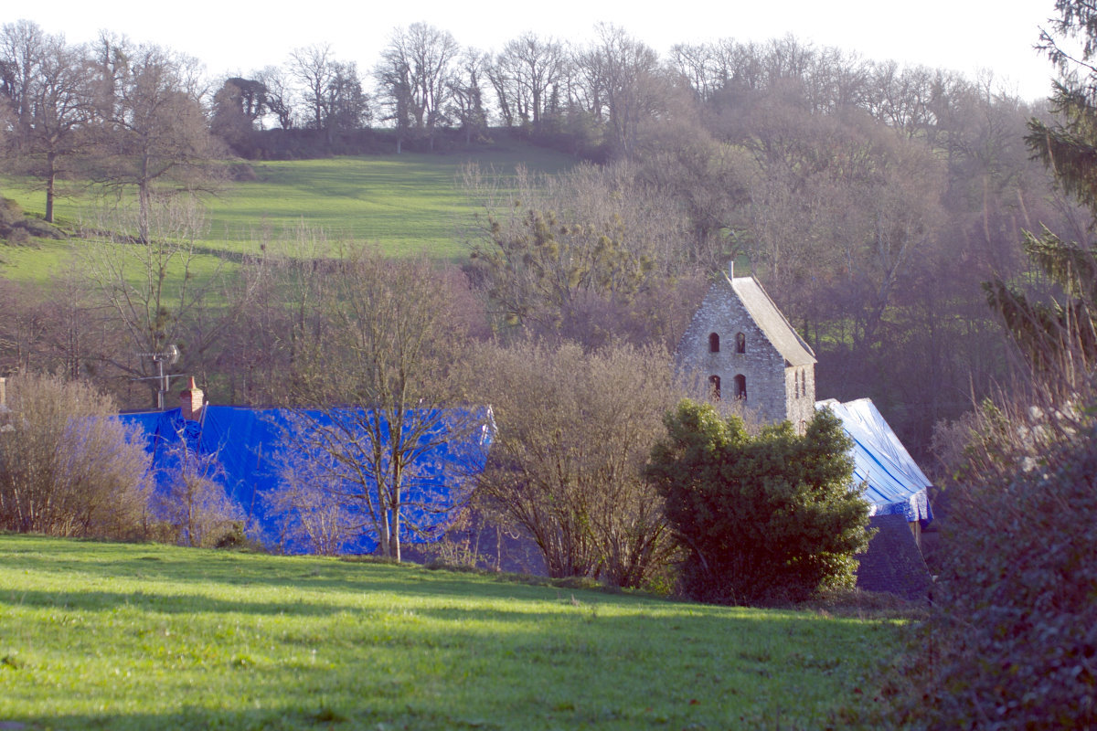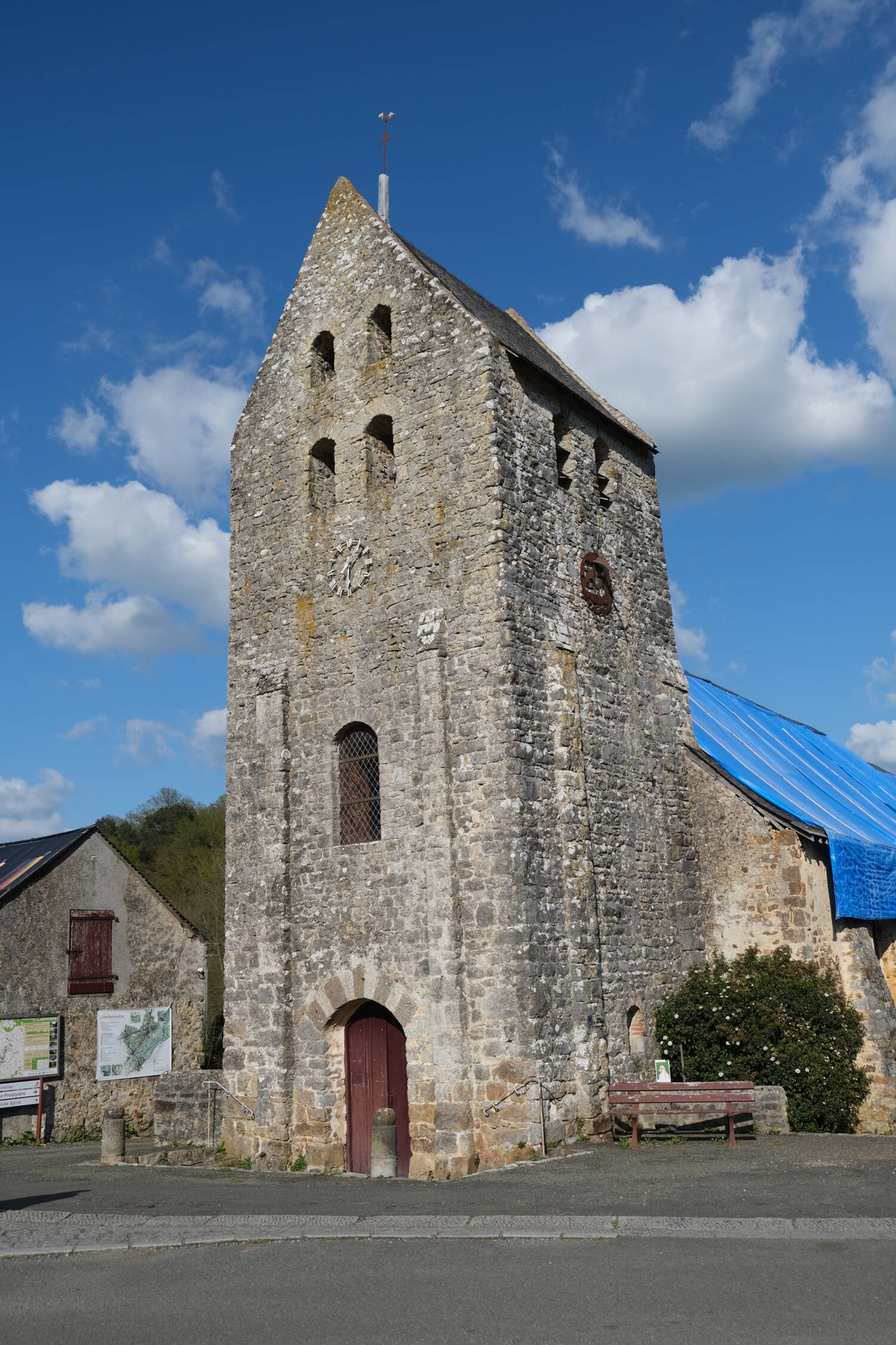 Fin XIIe-début XIIIe siècle le chœur a été allongé vers l’est.Le clocher-porche, à toit en bâtière, date quant à lui, de la fin du Moyen-Âge. Il semble comme une pièce rapportée, accolé à la nef. Sans liaisonnement avec cette dernière, il est fait d’un matériau homogène de moellons équarris de taille moyenne. Les ouvertures, au nombre de 13 ont des arcs légèrement surbaissés avec une trace de coffrage particulièrement marquée et des cintres qui reposent sur les piédroits des baies. Elles éclairent un étage de tribune, qui donne accès à la chambre des cloches.La charpente de l’église est de type à chevron formant ferme, doté de faux entraits, reliés à la sous-faîtière par tenons et mortaises. Elle est un peu postérieure à la construction du clocher et on note, au-dessus du chœur, le réemploi de nombreuses pièces d’une charpente précédente.Au cours des siècles, l’église a subi des modifications mineures: des baies ont été bouchées, d’autres percées. Une sacristie a été ajoutée à la fin du XVIIème siècle, sur le flanc sud du chœur et la fenêtre immédiatement voisine porte la date de 1781.Au tournant du XXème siècle des travaux de réfection ont été réalisés dans l’église.