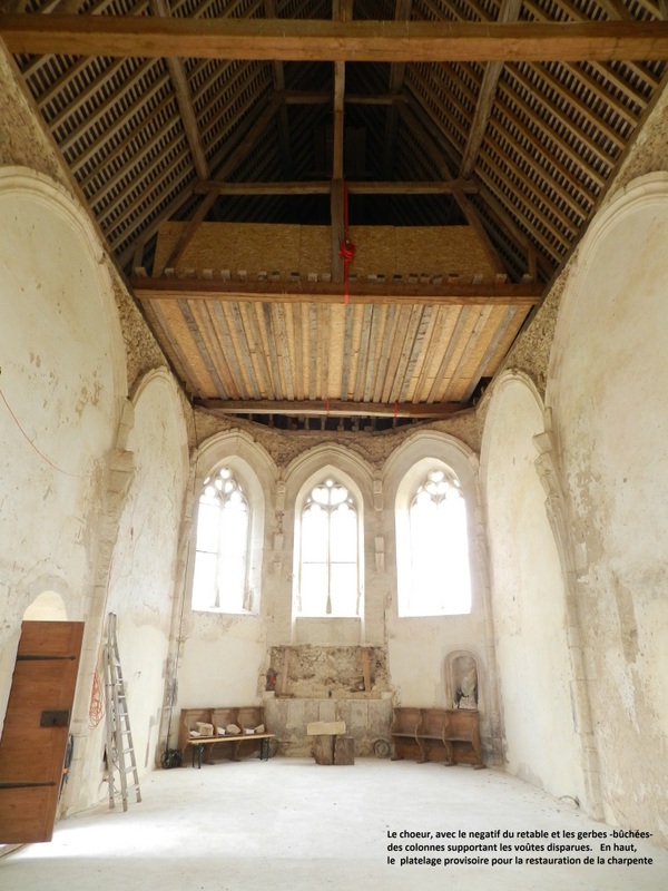 C’est Michel Bureau, prieur de l’abbaye mancelle de La Couture, qui est à l’origine de la construction de la chapelle en 1513. Elle se caractérisait par une importante élévation (longueur 12,25 m, hauteur 14,95 m et largeur 8,72 m), qu’il fallut contrebuter par huit contreforts, quatre rayonnants au chevet, deux au milieu des gouttereaux et deux aux angles. Sa voûte sur croisée d’ogives semble avoir reçu un décor en fausses coupes de pierre. Le joyau de la chapelle était le retable sculpté de l’autel majeur, œuvre de Guillaume Regnault (entre 1522 et 1527). Il avait été commandé par l’archevêque de Tours, abbé commendataire de l’abbaye de La Couture, Martin de Beaune de Semblançay. Guillaume Regnault (1450-1532) appartenait au cercle de Michel Colombe. La prédelle et les pilastres entourant le retable étaient ornés, à l’ordinaire, pourrait-on dire, de rinceaux, d’angelots, d’animaux fantastiques, de bouquets de fleurs, mais aussi des armes de la famille de Beaune de Semblançay ; l’entourage des trois niches s’amortissait en coquilles. On sait qu’une statue de sainte Catherine ornait l’une des niches. Les moulures du socle du retable et de la table de l’autel étaient de qualité ; à droite de l’autel avait été creusée une piscine liturgique.