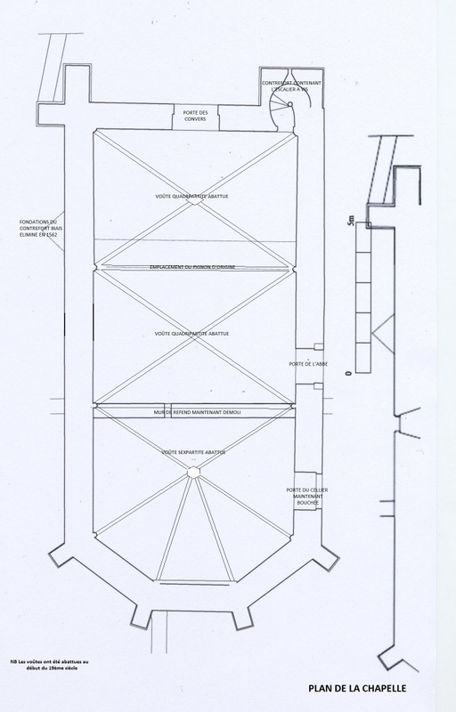 L’allongement de la nef, dans les années 1544 et 1545, correspond à l’abbatiat d’Adam Fumée (1527-1546) puis de son neveu, Nicolas Fumée, qui succéda à son oncle lorsque celui-ci passa à Genève où il adopta la religion réformée. Cet agrandissement consista à avancer le mur occidental que l’on contrebuta par quatre contreforts en grès roussard (matériau très sarthois) et en calcaire. Un escalier à vis fut logé dans un contrefort. Deux portes donnaient accès à la chapelle : une à un battant pour l’abbé, sur le mur gouttereau nord, l’autre à deux battants, au milieu du mur pignon. Cette dernière était surmontée d’une baie à trois lancettes, de type flamboyant, comme l’entrée occidentale.