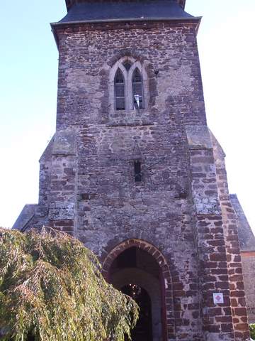 Maintes fois modifié au fil des siècles, l’édifice se signale par la couleur particulière de sa pierre, un grès ferrugineux. Il est précédé d’une tour-clocher du xiiie s., coiffée d’un toit en fer de hache très élancé, évidemment plus tardif (xviie s.). La nef unique conserve des traces des maçonneries de l’église primitive, et surtout un portail qui présente, quoique très restauré, des éléments de décor caractéristiques de la période romane : bâtons brisés, frette crénelée sur l’archivolte, bandeau en damier. Le vaisseau a reçu, à la fin du Moyen Âge, un berceau en charpente, décoré d’entraits sculptés.