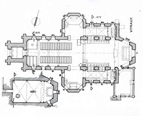 Le chœur et les croisillons du transept, terminés par des absides à trois pans, n’ont pas trouvé quant à eux leurs dimensions actuelles avant la fin du xviie s. (le mur extérieur du chevet porte la date de 1682, sous un écu aux armes de François de Boulainvilliers). Le chœur communique, par des arcades ouvertes à la fin du siècle suivant, avec deux petites chapelles latérales à chevet plat ; il a été fortement restauré après un incendie survenu en 1866. Le croisillon nord du transept correspond à l’ancienne chapelle seigneuriale, aménagée pour les Boulainvilliers et dédiée à Notre-Dame de Liesse.
