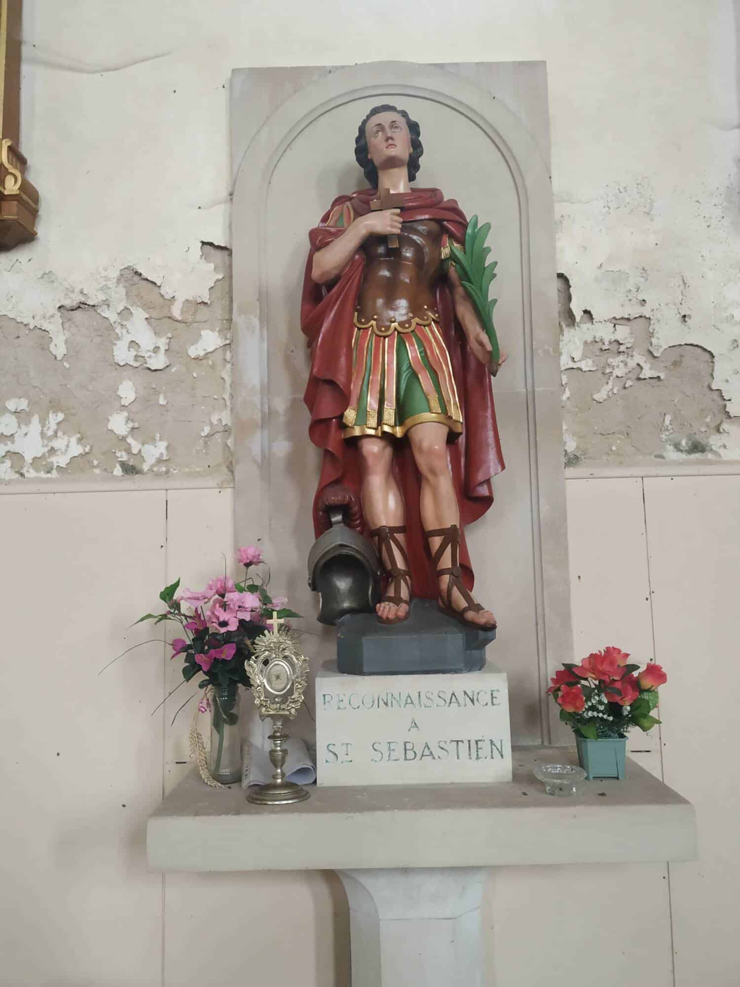L’origine de l’édifice remonte au XIVe siècle avec la construction du donjon, probablement conçu comme une maison forte destinée à protéger les habitants en période de troubles. Au XVIe siècle, une première église vient s’accoler à cette tour, formant un ensemble à la fois religieux et défensif. Toutefois, l’édifice est profondément remanié en 1779, comme l’atteste une inscription latine, indiquant une reconstruction à partir des fondations et un agrandissement significatif, tout en conservant et réparant la tour ancienne. Cette campagne donne naissance à l’église actuelle, de dimensions plus importantes. Par la suite, divers aménagements sont réalisés, notamment l’ajout d’une tourelle d’escalier en 1734 et l’installation de cloches bénies en 1868. Classée parmi les églises fortifiées, l’église Saint-Sébastien conserve ainsi les traces de son évolution, mêlant architecture défensive médiévale et reconstruction religieuse moderne.