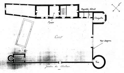 Située sur un coteau à 2 km au sud-ouest du bourg de Saint-Uniac, la chapelle de Quénetain est l’un des éléments d’un ensemble seigneurial reconstruit dans la seconde moitié du XVIIe s. sur l’emplacement d’un manoir plus ancien. Il s’organise autour d’une cour rectangulaire autrefois close ; l’ancien manoir, détruit au XIXe s., occupait à l’origine le côté ouest, un grand corps de logis construit vers 1650 et prolongé à l’ouest d’un cellier constitue le côté nord ; la chapelle et un pigeonnier, autrefois reliés par un portail aujourd’hui disparu, marquent les angles nord-est et sud-est, et un fournil complète l’ensemble à l’angle sud-ouest. Deux corps de dépendances, rajoutés au XIXe s. lors de la transformation du manoir en ferme, prolongent la cour à l’ouest. Au sud s’étend le jardin d’agrément, autrefois cerné de douves.