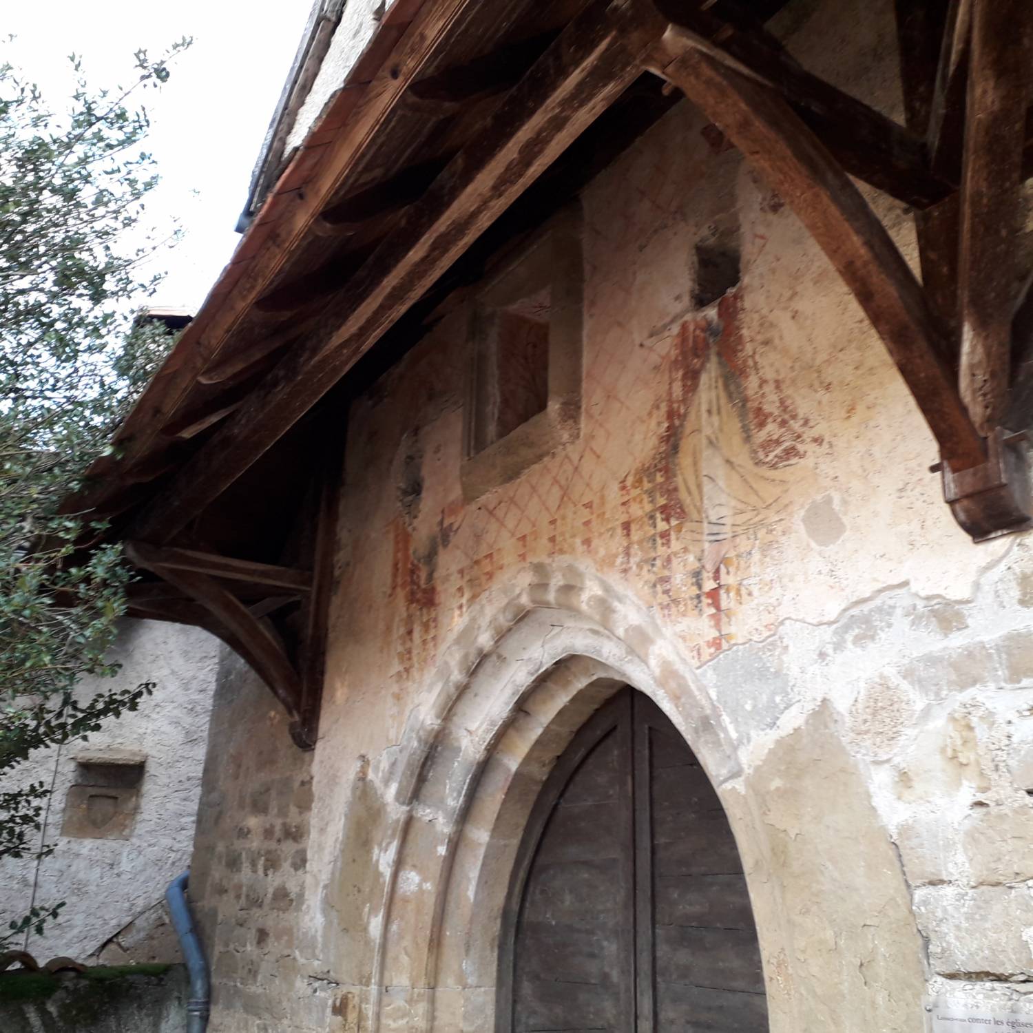 A l’ouest, au-dessus de la porte d’entrée de l’église subsistent des fragments de peintures murales du XVème siècle, consolidées en 2010, figurant une Annonciation, œuvre d’un atelier ayant également travaillé à St Jean Lespinasse et Soulomès.