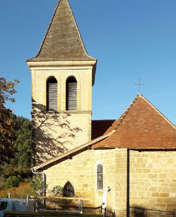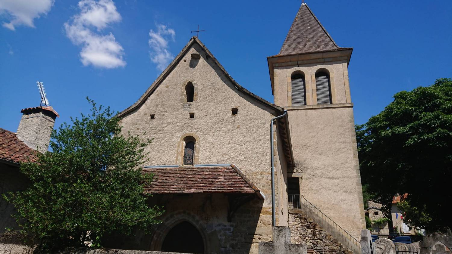 Un collatéral, sur la première travée, duquel est installé le clocher dont les parties hautes ont été reprises au XIXème siècle, a été érigé sur le flanc méridional de l’édifice.