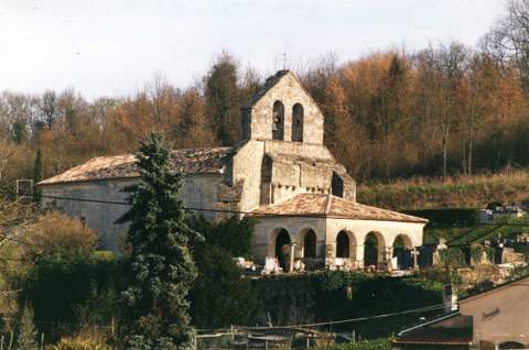 Eglise Sainte-Florence. Le village est situé dans la vallée de la Dordogne à environ 35 km à l’est de Bordeaux et à une dizaine de kilomètres au sud-ouest de Castillon-la-Bataille. L’église, située à flanc de coteau, est de type roman. Son plan est celui d’une nef unique avec abside semi-circulaire. Une sacristie a été ajourée au nord : elle porte la date de 1727. Un porche à arcade que l’on peut dater de la deuxième moitié du XVIIIème s. précède l’édifice à l’ouest. Un énorme contrefort soutient l’angle nord-ouest tandis que des contreforts plats soutiennent l’abside et les murs de la nef dont on peut admirer le bel appareil, notamment au nord. C’est au nord aussi que s’ouvre une belle porte de style flamboyant, portant les traces d’un écusson supporté par deux anges. Comme il arrive fréquemment dans cette région, le portail occidental abrité par le porche constitue l’élément le plus soigné de l’ensemble. Il est orné de quatre voussures moulurées dont trois en arc brisé ; il est sur monté d’une archivolte décorée d’étoiles. Les chapiteaux de grande qualité sur lesquels reposent les arcs du portail sont ornés d’oiseaux dans des feuillages ou de quadrupèdes à longues jambes. La corniche repose sur des modillons zoomorphes. L’intérieur de l’église est très simple : l’arc triomphal repose sur deux chapiteaux sculptés, l’un orné d’un centaure, l’autre d’un évêque avec sa crosse. L’arc triomphal est cantonné de deux retables latéraux. Le chœur est ennobli par des boiseries datées du XVIIIème s. et certainement reprises en 1824, qui lui donnent une belle homogénéité. En raison de leur très mauvais état, elles ont dû être déposées. Cette opération a fait apparaître une maçonnerie passablement dégradée qu’il convenait de conforter avant de remettre en place le décor. L’église souffre de l’humidité en raison du niveau des terres qui l’entourent et qui se situent au sud à près d’un mètre au-dessus du niveau intérieur. C’est la raison pour laquelle l’édifice a, en quelque sorte, été décaissé de ce côté. Des fissurations et des désordres divers étaient apparus clans les maçonneries, notamment à la jonction du clocher et du mur sud. Enfin des travaux très urgents devaient être exécutés pour consolider le portail nord. La Sauvegarde de l’Art Français a participé à cette campagne par une subvention de 35 000 F en 1995.