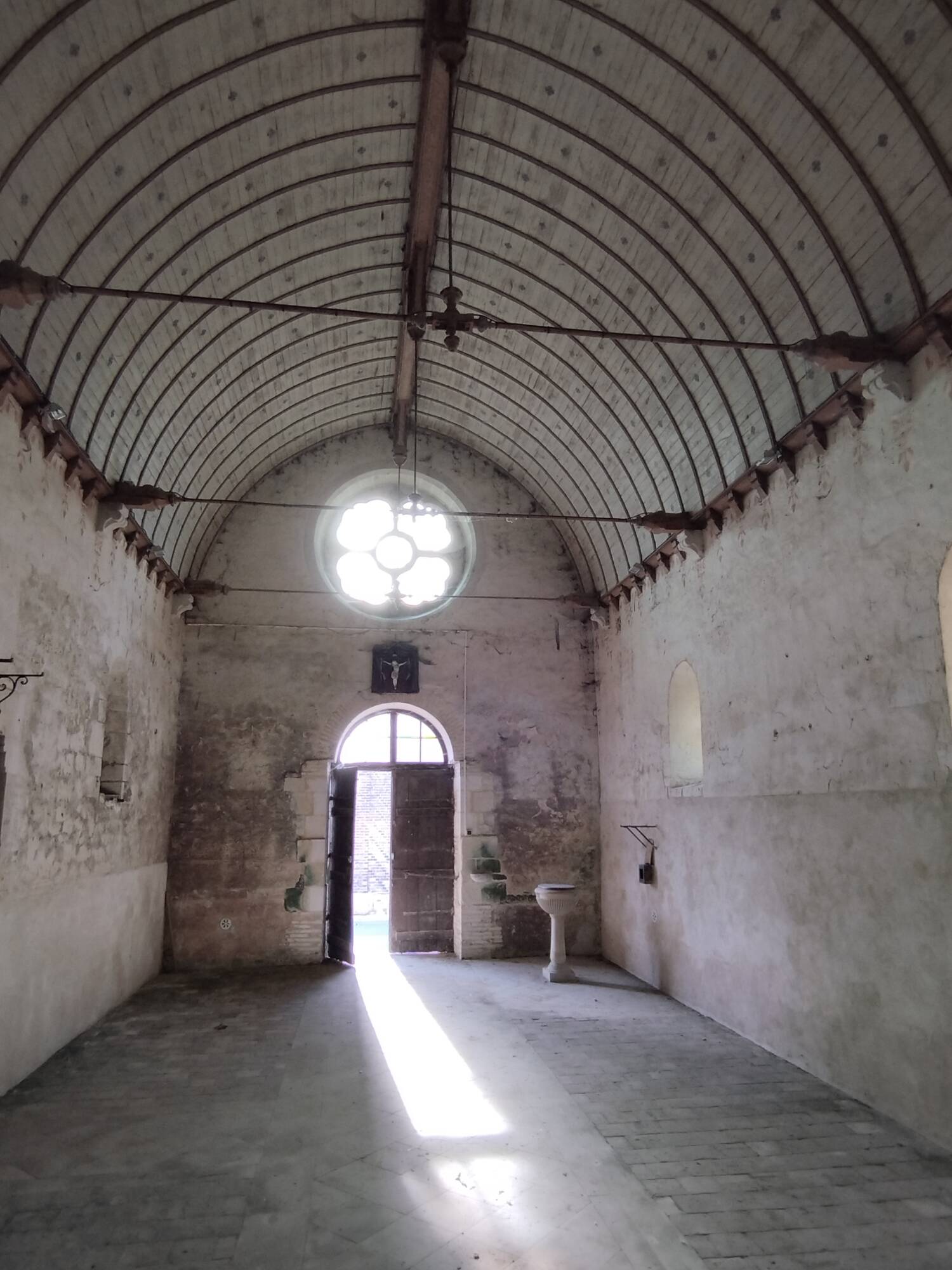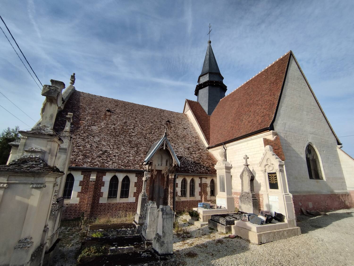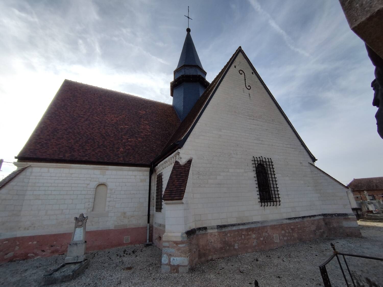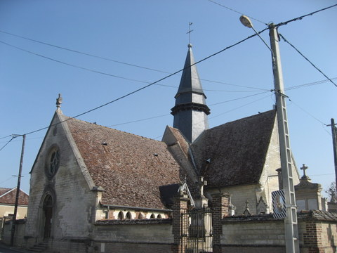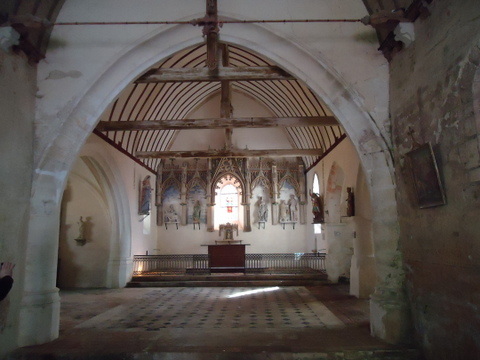 La yoûte de la nef, de style ogival, est en bois avec entraits et poinçons en fer. Une porte latérale s’ouvre à droite, au milieu de la nef et donne accès à cette nouvelle sacristie dont il vient d’être question, et au cimetière qui contourne tout le monument.